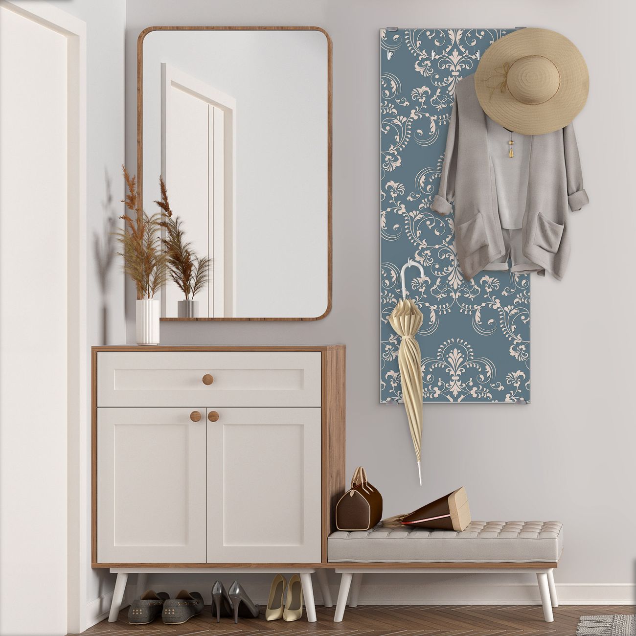 Flurgarderobe Glas 50x125cm Motiv Royal Creme Blau