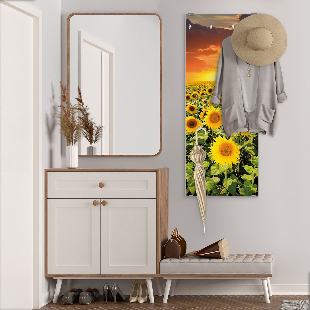 Flurgarderobe Glas 50x125cm Motiv Sonnenblumenmeer