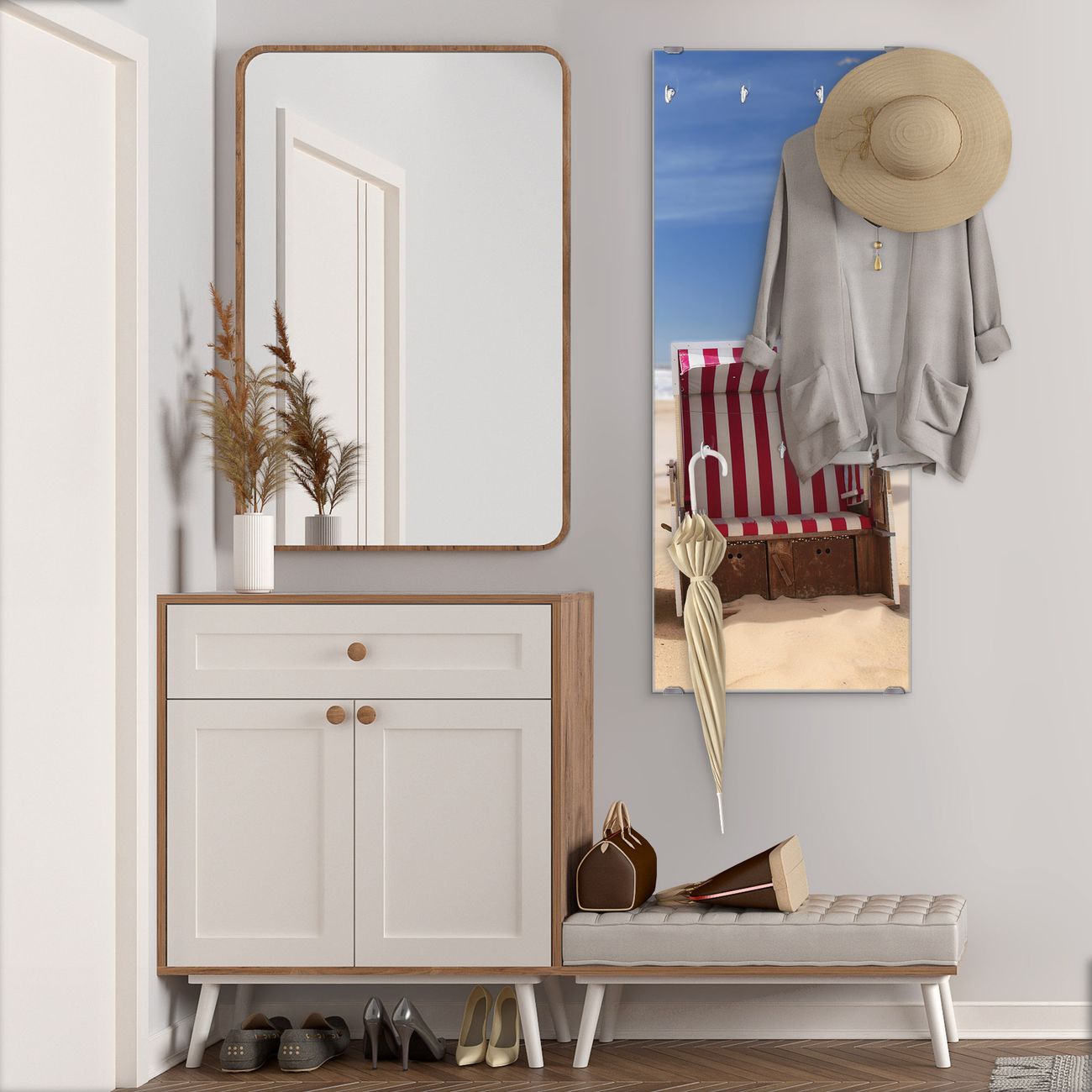 Flurgarderobe Glas 50x125cm Motiv Strandkörbe