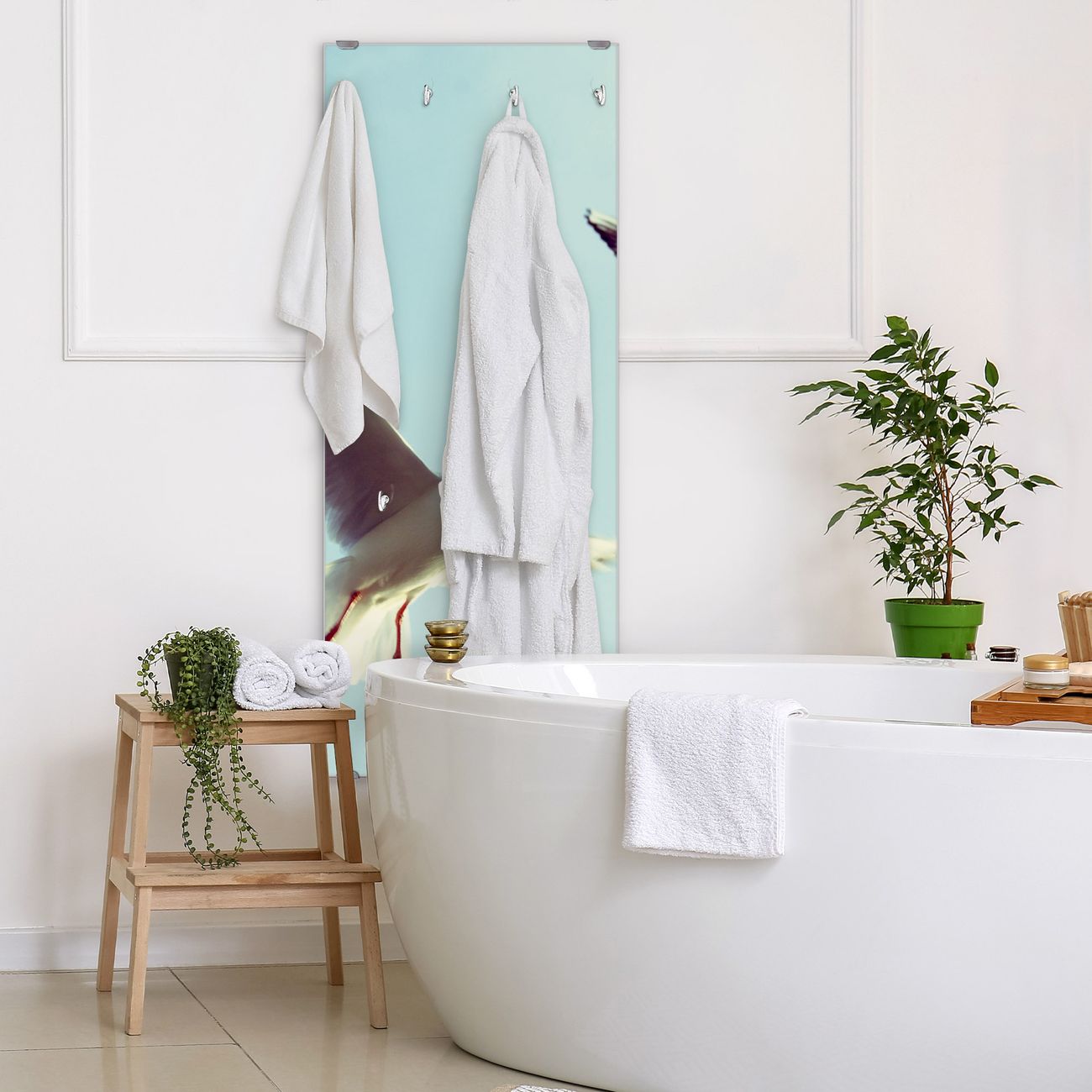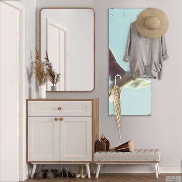 FUNKTION: Die banjado Wandgarderobe mit Motiv 2 Möwen ist Ihr täglicher Begleiter. Zuverlässig hängen hier Ihre Jacken und Mäntel griffbereit. Das Echtglas ist Ihr Paneel auch beschreibbar und wieder abwischbar. DESIGN: Sie erhalten eine Garderobenleiste aus elegantem Echtglas mit dem Farbbrillanten Motiv 2 Möwen hinterklebt. Das Design ist zeitlos klassisch, ohne dabei auf Funktionalität zu verzichten. Suchen Sie aus einer Vielzahl von Motiven das für Ihre Einrichtung Passende aus. DETAILS: Die Flurgarderobe besteht aus 4mm gehärtetem Sicherheitsglas. Sie ist 50cm breit, 125cm hoch und 6cm tief. Die Garderobenhaken zur Selbstmontage präsentieren sich in Edelstahl-Optik, ebenso die Abstandshalter für die Wandmontage. Ihre neue Garderobe ist sofort einsatzbereit. NUTZEN: Ihre neue Garderobe hält nicht nur zuverlässig Ihre Kleidung, sie ist auch optisch ein Blickfang. Durch das Glas können Sie an der Garderobe mit wasserlöslichen Kreidestiften oder Whiteboard-Markern auch Nachrichten hinterlassen. BANJADO: Wir sind ein kleines kreatives Team aus Sachsen und entwickeln Produkte die Design und Funktionalität verbinden sollen. Viel Freude mit Ihrer neuen Garderobe wünscht das banjado-Team!