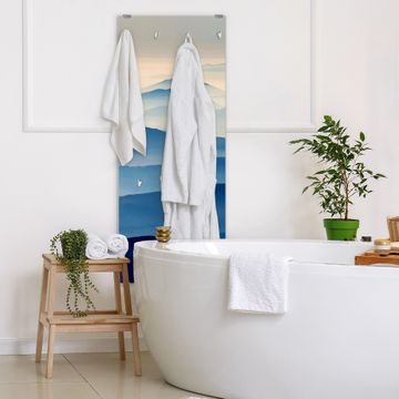 FUNKTION: Die banjado Wandgarderobe mit Motiv Hinter den Bergen ist Ihr täglicher Begleiter. Zuverlässig hängen hier Ihre Jacken und Mäntel griffbereit. Das Echtglas ist Ihr Paneel auch beschreibbar und wieder abwischbar. DESIGN: Sie erhalten eine Garderobenleiste aus elegantem Echtglas mit dem Farbbrillanten Motiv Hinter den Bergen hinterklebt. Das Design ist zeitlos klassisch, ohne dabei auf Funktionalität zu verzichten. Suchen Sie aus einer Vielzahl von Motiven das für Ihre Einrichtung Passende aus. DETAILS: Die Flurgarderobe besteht aus 4mm gehärtetem Sicherheitsglas. Sie ist 50cm breit, 125cm hoch und 6cm tief. Die Garderobenhaken zur Selbstmontage präsentieren sich in Edelstahl-Optik, ebenso die Abstandshalter für die Wandmontage. Ihre neue Garderobe ist sofort einsatzbereit. NUTZEN: Ihre neue Garderobe hält nicht nur zuverlässig Ihre Kleidung, sie ist auch optisch ein Blickfang. Durch das Glas können Sie an der Garderobe mit wasserlöslichen Kreidestiften oder Whiteboard-Markern auch Nachrichten hinterlassen. BANJADO: Wir sind ein kleines kreatives Team aus Sachsen und entwickeln Produkte die Design und Funktionalität verbinden sollen. Viel Freude mit Ihrer neuen Garderobe wünscht das banjado-Team!