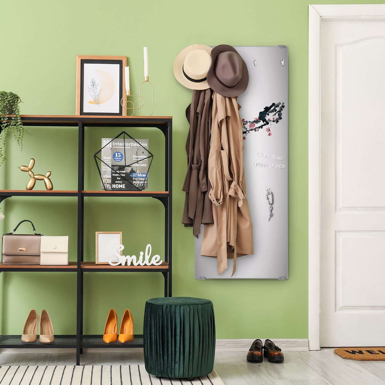 FUNKTION: Die banjado Wandgarderobe mit Motiv Japanische Blüten 2 ist Ihr täglicher Begleiter. Zuverlässig hängen hier Ihre Jacken und Mäntel griffbereit. Das Echtglas ist Ihr Paneel auch beschreibbar und wieder abwischbar. DESIGN: Sie erhalten eine Garderobenleiste aus elegantem Echtglas mit dem Farbbrillanten Motiv Japanische Blüten 2 hinterklebt. Das Design ist zeitlos klassisch, ohne dabei auf Funktionalität zu verzichten. Suchen Sie aus einer Vielzahl von Motiven das für Ihre Einrichtung Passende aus. DETAILS: Die Flurgarderobe besteht aus 4mm gehärtetem Sicherheitsglas. Sie ist 50cm breit, 125cm hoch und 6cm tief. Die Garderobenhaken zur Selbstmontage präsentieren sich in Edelstahl-Optik, ebenso die Abstandshalter für die Wandmontage. Ihre neue Garderobe ist sofort einsatzbereit. NUTZEN: Ihre neue Garderobe hält nicht nur zuverlässig Ihre Kleidung, sie ist auch optisch ein Blickfang. Durch das Glas können Sie an der Garderobe mit wasserlöslichen Kreidestiften oder Whiteboard-Markern auch Nachrichten hinterlassen. BANJADO: Wir sind ein kleines kreatives Team aus Sachsen und entwickeln Produkte die Design und Funktionalität verbinden sollen. Viel Freude mit Ihrer neuen Garderobe wünscht das banjado-Team!