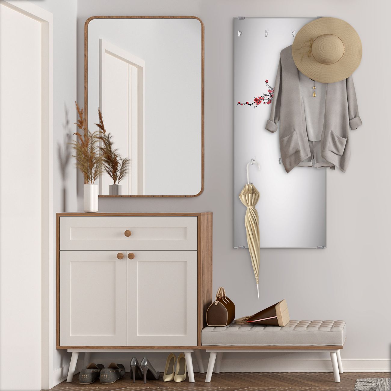 Flurgarderobe Glas 50x125cm Motiv Japanische Blüten 2