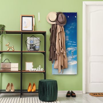 FUNKTION: Die banjado Wandgarderobe mit Motiv Wolken 11 ist Ihr täglicher Begleiter. Zuverlässig hängen hier Ihre Jacken und Mäntel griffbereit. Das Echtglas ist Ihr Paneel auch beschreibbar und wieder abwischbar. DESIGN: Sie erhalten eine Garderobenleiste aus elegantem Echtglas mit dem Farbbrillanten Motiv Wolken 11 hinterklebt. Das Design ist zeitlos klassisch, ohne dabei auf Funktionalität zu verzichten. Suchen Sie aus einer Vielzahl von Motiven das für Ihre Einrichtung Passende aus. DETAILS: Die Flurgarderobe besteht aus 4mm gehärtetem Sicherheitsglas. Sie ist 50cm breit, 125cm hoch und 6cm tief. Die Garderobenhaken zur Selbstmontage präsentieren sich in Edelstahl-Optik, ebenso die Abstandshalter für die Wandmontage. Ihre neue Garderobe ist sofort einsatzbereit. NUTZEN: Ihre neue Garderobe hält nicht nur zuverlässig Ihre Kleidung, sie ist auch optisch ein Blickfang. Durch das Glas können Sie an der Garderobe mit wasserlöslichen Kreidestiften oder Whiteboard-Markern auch Nachrichten hinterlassen. BANJADO: Wir sind ein kleines kreatives Team aus Sachsen und entwickeln Produkte die Design und Funktionalität verbinden sollen. Viel Freude mit Ihrer neuen Garderobe wünscht das banjado-Team!