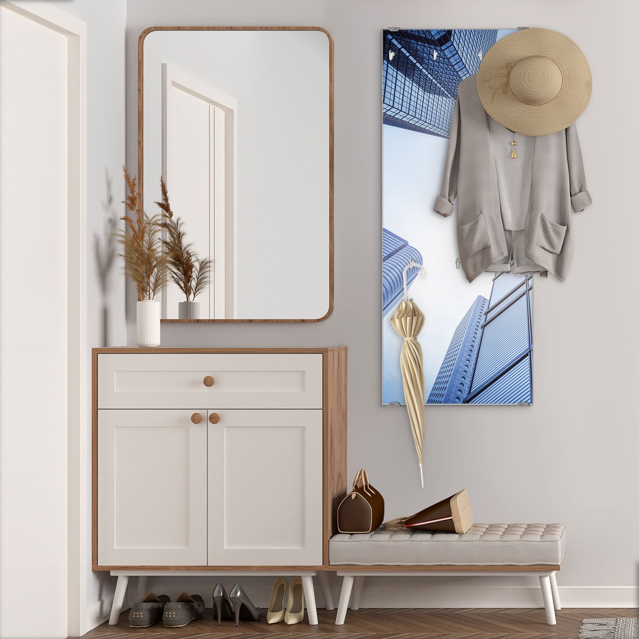 Flurgarderobe Glas 50x125cm Motiv Wolkenkratzer