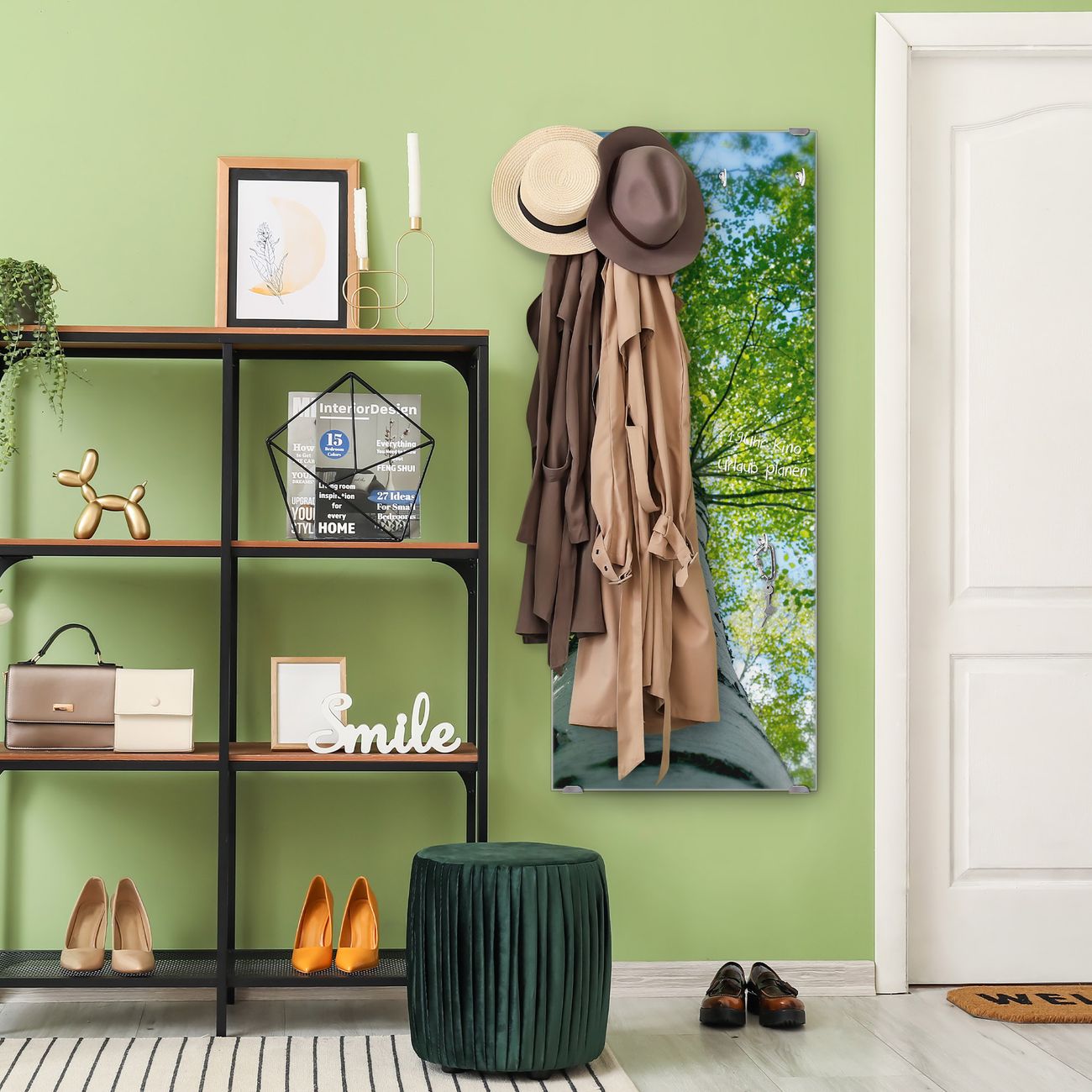FUNKTION: Die banjado Wandgarderobe mit Motiv Zwischen Bäumen 5 ist Ihr täglicher Begleiter. Zuverlässig hängen hier Ihre Jacken und Mäntel griffbereit. Das Echtglas ist Ihr Paneel auch beschreibbar und wieder abwischbar. DESIGN: Sie erhalten eine Garderobenleiste aus elegantem Echtglas mit dem Farbbrillanten Motiv Zwischen Bäumen 5 hinterklebt. Das Design ist zeitlos klassisch, ohne dabei auf Funktionalität zu verzichten. Suchen Sie aus einer Vielzahl von Motiven das für Ihre Einrichtung Passende aus. DETAILS: Die Flurgarderobe besteht aus 4mm gehärtetem Sicherheitsglas. Sie ist 50cm breit, 125cm hoch und 6cm tief. Die Garderobenhaken zur Selbstmontage präsentieren sich in Edelstahl-Optik, ebenso die Abstandshalter für die Wandmontage. Ihre neue Garderobe ist sofort einsatzbereit. NUTZEN: Ihre neue Garderobe hält nicht nur zuverlässig Ihre Kleidung, sie ist auch optisch ein Blickfang. Durch das Glas können Sie an der Garderobe mit wasserlöslichen Kreidestiften oder Whiteboard-Markern auch Nachrichten hinterlassen. BANJADO: Wir sind ein kleines kreatives Team aus Sachsen und entwickeln Produkte die Design und Funktionalität verbinden sollen. Viel Freude mit Ihrer neuen Garderobe wünscht das banjado-Team!