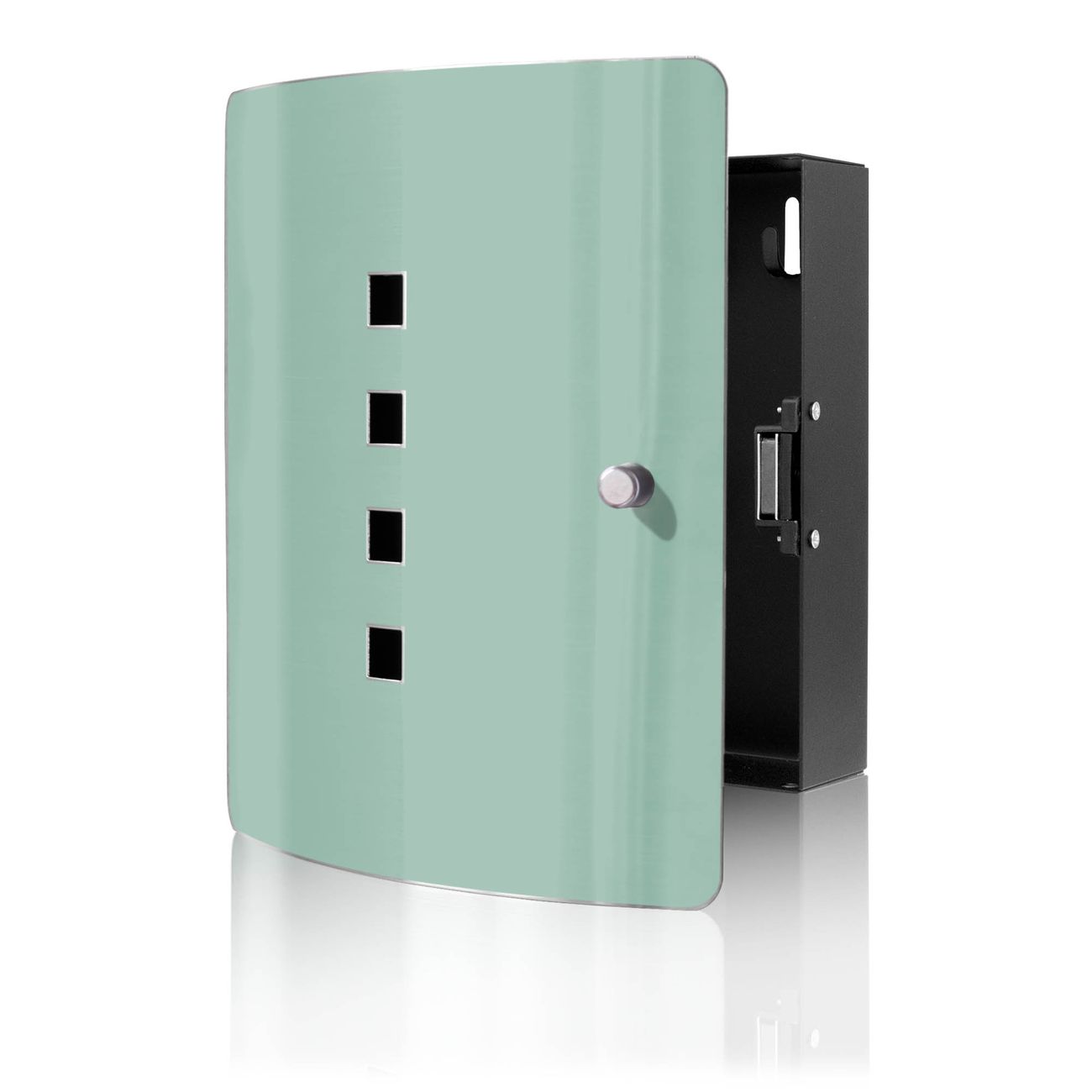 Funktion / Nutzen: Die leicht geschwungene Edelstahltür ist mit einer hochwertigen Motivfolie und dem Motiv Farbe Salbei kaschiert. Ein praktischer Magnetverschluss ermöglicht Ihnen ein schnelles Öffnen und Schließen. Befestigt wird der Schlüsselkasten an 2 Stellen auf der Rückseite, passendes Montagematerial fügen wir bereits bei.