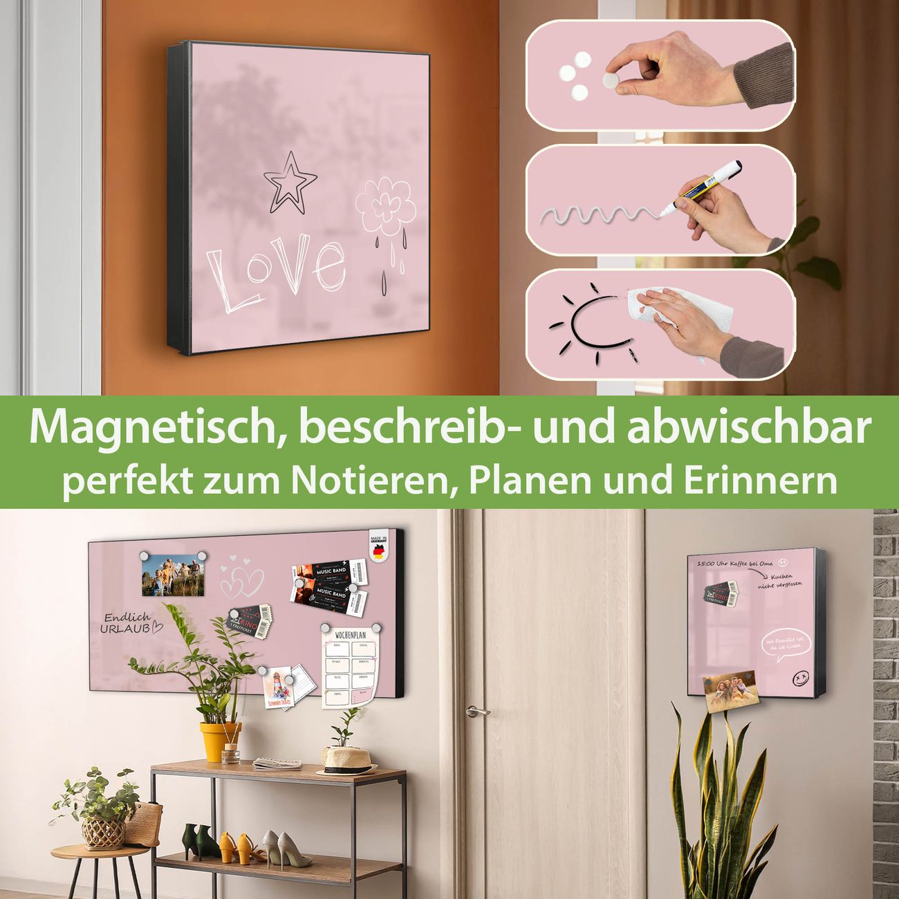 ✅ Magnetisch und mit Kreidestift beschreibbar, rechts angeschlagene TürOrdnung und Design in einem