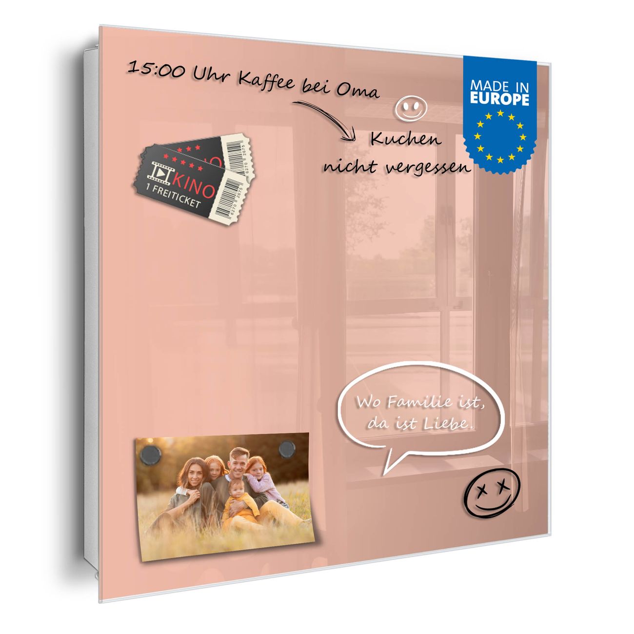 ✅ Magnetisch und mit Kreidestift beschreibbar, gehärtetes Glas, rechts angeschlagene TürOrdnung und Design in einem