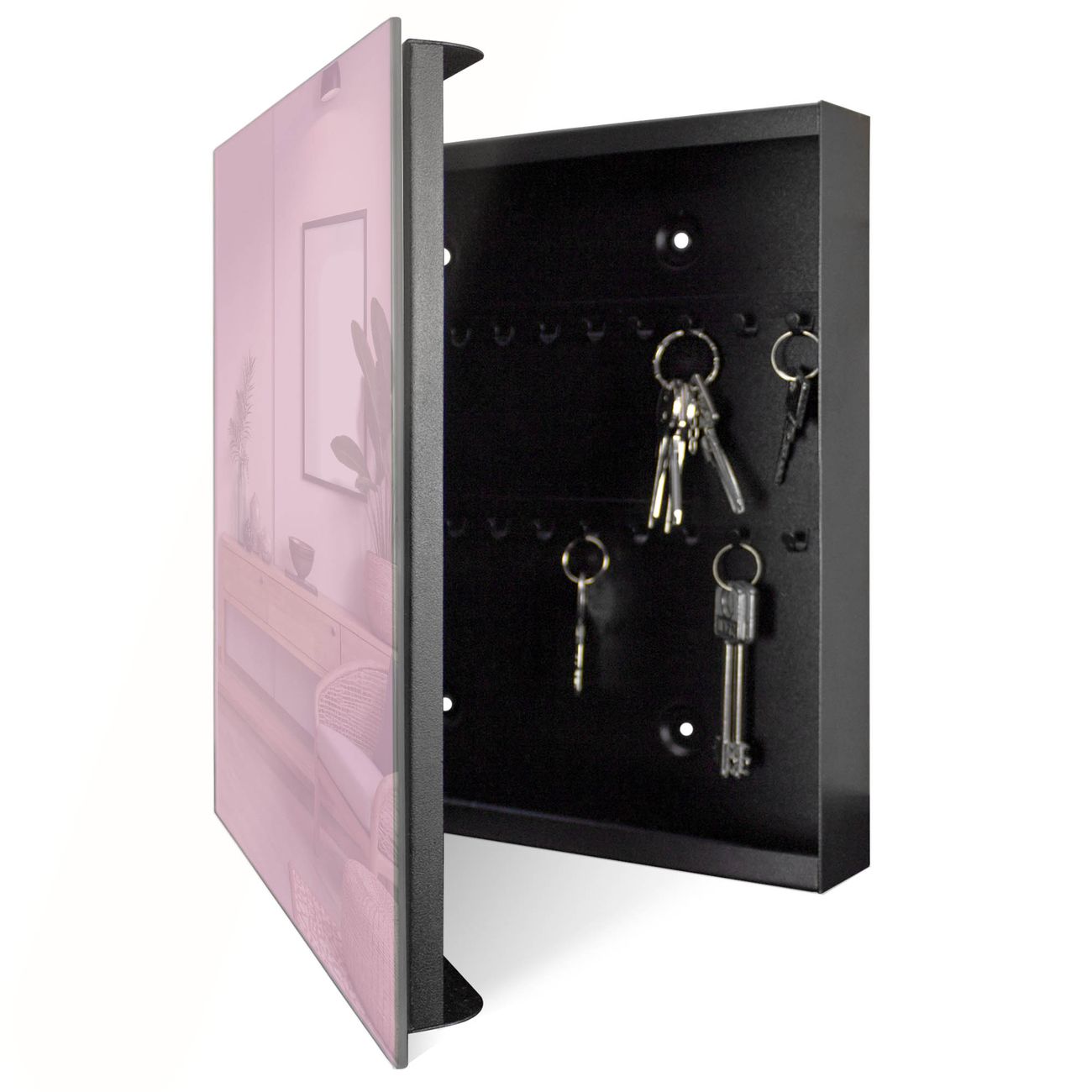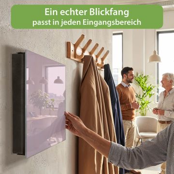 Bringe Ordnung und Eleganz in deinen Eingangsbereich mit dem banjado Schlüsselkasten Motiv Farbe Flieder. Die moderne Schlüsselbox kombiniert funktionales Design mit hochwertiger Verarbeitung und wird so zu einem echten Hingucker in Flur, Büro oder Ferienwohnung. ✅ Stilvolle Schlüsselaufbewahrung mit Glasfront im Motiv Farbe Flieder Der Design-Schlüsselkasten Motiv Farbe Flieder bietet Platz für bis zu 50 Schlüssel, die auf 5 stabilen Reihen mit je 10 Haken übersichtlich verstaut werden. Mit seinen kompakten Maßen von 30 x 30 x 5 cm passt die Schlüsselbox perfekt auch in kleinere Räume. Der schwarz lackierte Stahlkorpus mit rechts angeschlagenem Türscharnier harmoniert mit der Glasfront und fügt sich nahtlos in jedes Wohnambiente ein. Ob als Schlüsselorganizer für Zuhause oder als praktische Lösung für Büros, Praxen und Gewerbe, der banjado Schlüsselkasten sorgt für Ordnung und Übersicht. Dank der magnetischen, mit Kreidestiften beschreibbaren Glasfront kannst du Notizen anheften oder Termine direkt auf der Oberfläche festhalten. Die Schlüsselbox Motiv Farbe Flieder zur Wandmontage wird inklusive Befestigungsmaterial geliefert und ist schnell angebracht. So hast du deine Schlüssel jederzeit griffbereit und zugleich stilvoll verstaut. Mit diesem banjado Schlüsselkasten Motiv Farbe Flieder kombinierst du praktische Aufbewahrung mit stilvollem Wohndesign. Ob privat oder geschäftlich, die Schlüsselbox sorgt für mehr Ordnung, Übersicht und ein wohnliches Ambiente.Vorteile im Überblick