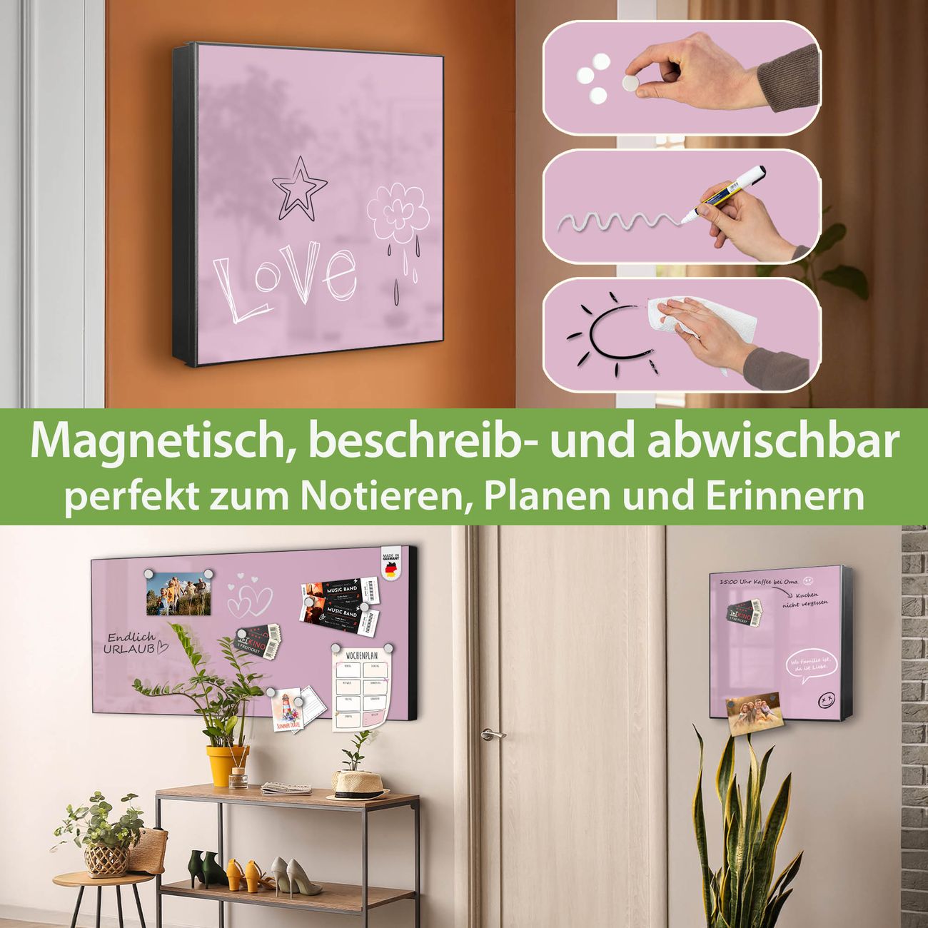✅ Magnetisch und mit Kreidestift beschreibbar, links angeschlagene TürOrdnung und Design in einem