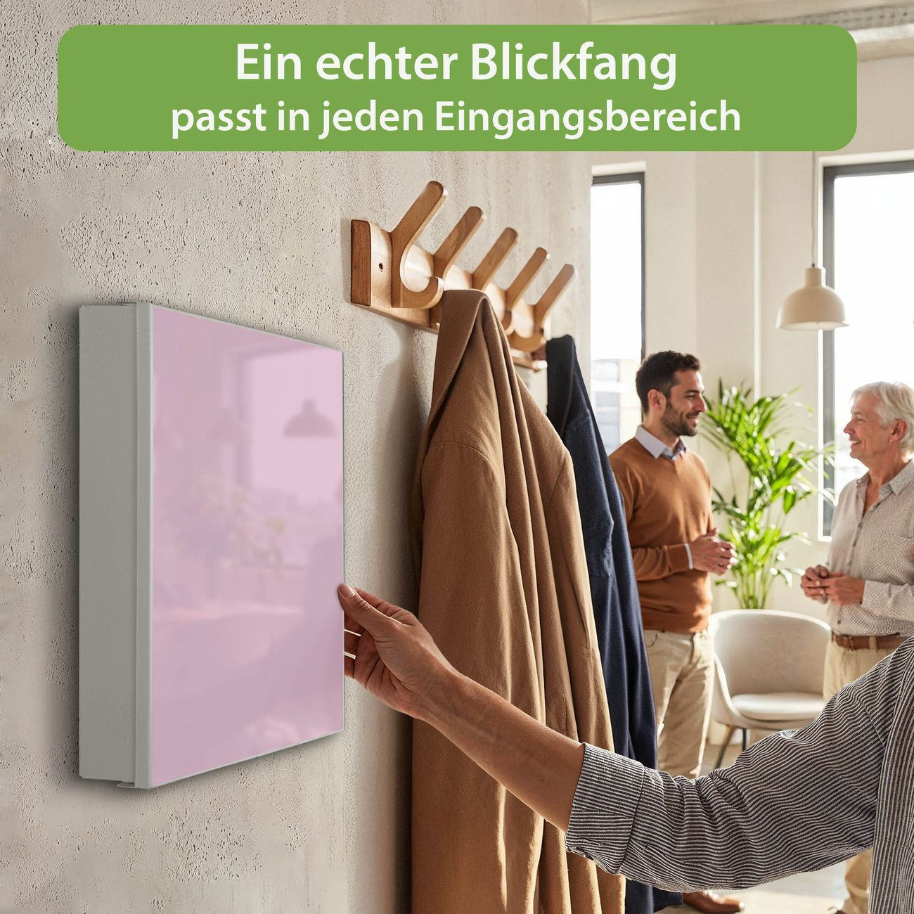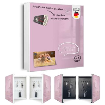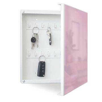 Bringe Ordnung und Eleganz in deinen Eingangsbereich mit dem banjado Schlüsselkasten Motiv Farbe Flieder. Die moderne Schlüsselbox kombiniert funktionales Design mit hochwertiger Verarbeitung und wird so zu einem echten Hingucker in Flur, Büro oder Ferienwohnung. ✅ Stilvolle Schlüsselaufbewahrung mit Motiv Farbe Flieder Der Design-Schlüsselkasten Motiv Farbe Flieder bietet Platz für bis zu 32 Schlüssel, die auf 4 stabilen Reihen mit je 8 Haken übersichtlich verstaut werden. Mit seinen kompakten Maßen von 30 x 30 x 5 cm passt die Schlüsselbox perfekt auch in kleinere Räume. Der weiß lackierte Stahlkorpus mit rechts angeschlagenem Türscharnier harmoniert mit gedruckten Folie auf der Front und fügt sich nahtlos in jedes Wohnambiente ein. Ob als Schlüsselorganizer für Zuhause oder als praktische Lösung für Büros, Praxen und Gewerbe, der banjado Schlüsselkasten sorgt für Ordnung und Übersicht. Dank der magnetischen, mit Kreidestiften beschreibbaren Folie auf der Front kannst du Notizen anheften oder Termine direkt auf der Oberfläche festhalten. Die Schlüsselbox Motiv Farbe Flieder zur Wandmontage wird inklusive Befestigungsmaterial geliefert und ist schnell angebracht. So hast du deine Schlüssel jederzeit griffbereit und zugleich stilvoll verstaut. Mit diesem banjado Schlüsselkasten Motiv Farbe Flieder kombinierst du praktische Aufbewahrung mit stilvollem Wohndesign. Ob privat oder geschäftlich, die Schlüsselbox sorgt für mehr Ordnung, Übersicht und ein wohnliches Ambiente.Vorteile im Überblick