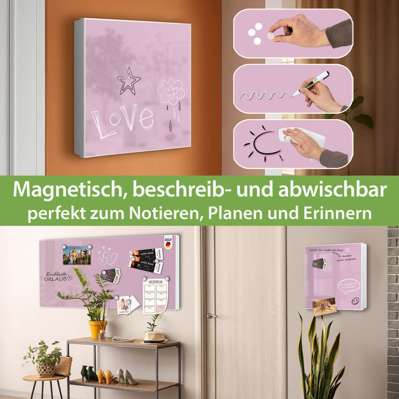 ✅ Magnetisch und mit Kreidestift beschreibbar, rechts angeschlagene TürOrdnung und Design in einem