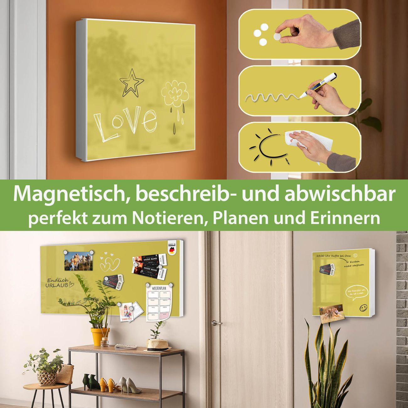 ✅ Magnetisch und mit Kreidestift beschreibbar, links angeschlagene TürOrdnung und Design in einem