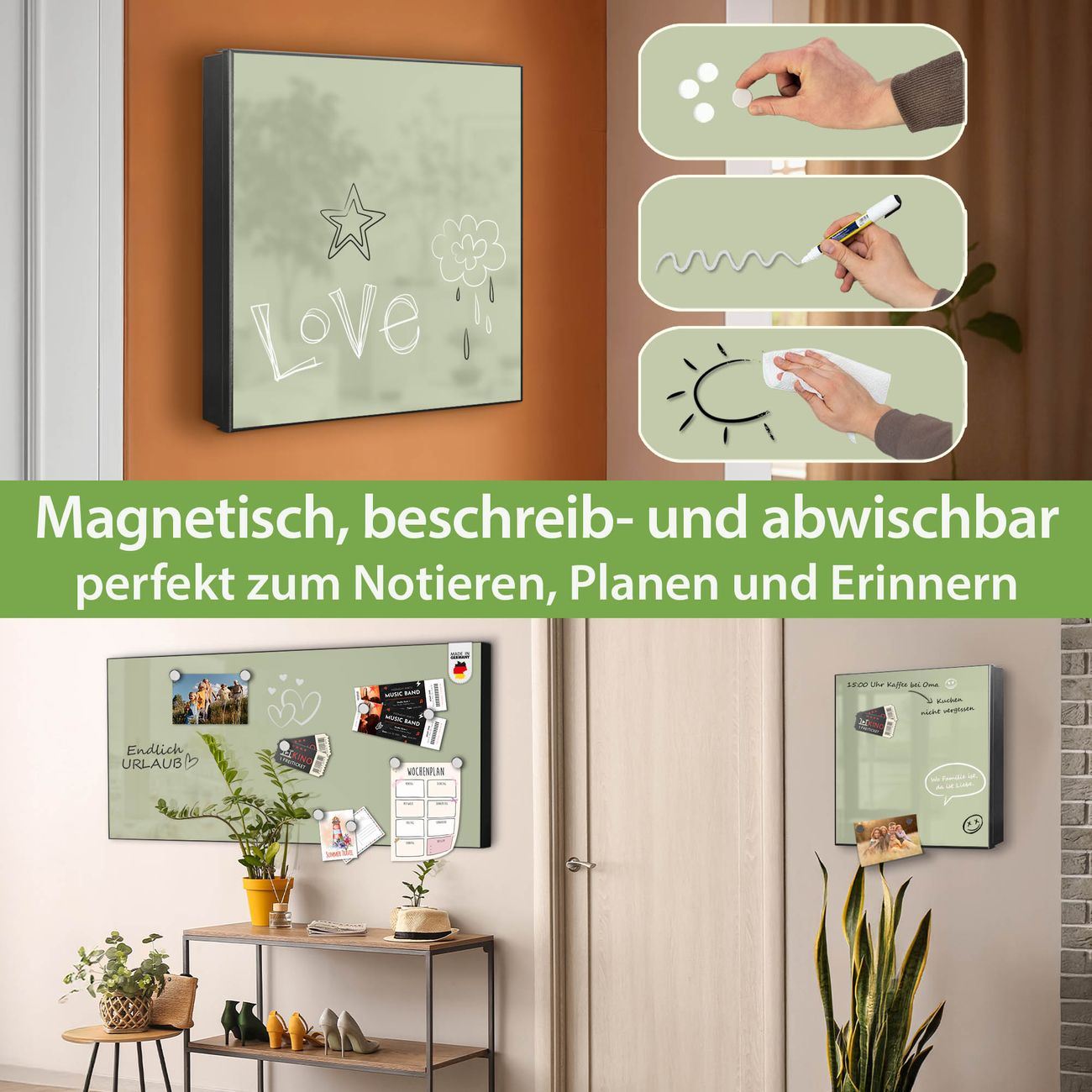 ✅ Magnetisch und mit Kreidestift beschreibbar, rechts angeschlagene TürOrdnung und Design in einem