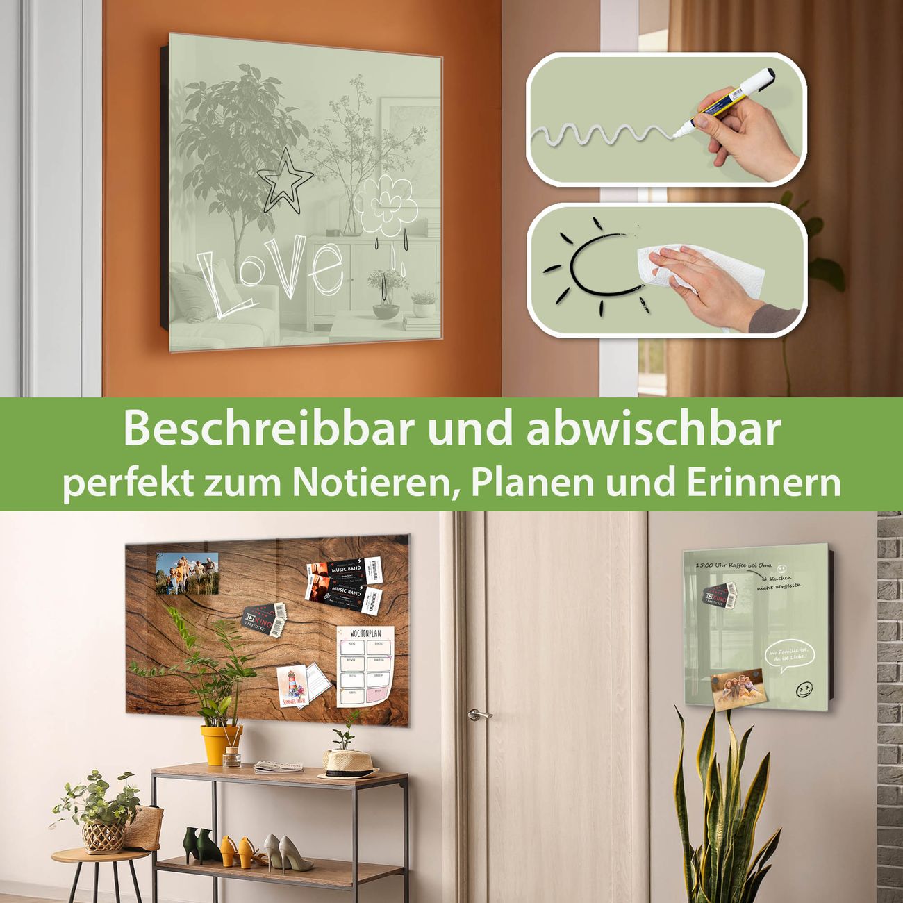 ✅ Magnetisch und mit Kreidestift beschreibbar, gehärtetes Glas, links angeschlagene TürOrdnung und Design in einem