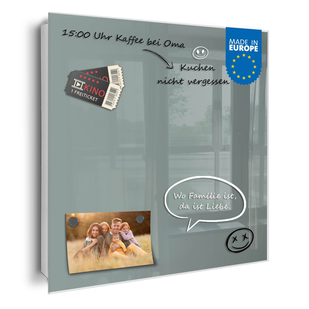 ✅ Magnetisch und mit Kreidestift beschreibbar, gehärtetes Glas, rechts angeschlagene TürOrdnung und Design in einem