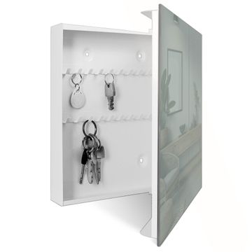 Bringe Ordnung und Eleganz in deinen Eingangsbereich mit dem banjado Schlüsselkasten Motiv Farbe Steingrau. Die moderne Schlüsselbox kombiniert funktionales Design mit hochwertiger Verarbeitung und wird so zu einem echten Hingucker in Flur, Büro oder Ferienwohnung. ✅ Stilvolle Schlüsselaufbewahrung mit Glasfront im Motiv Farbe Steingrau Der Design-Schlüsselkasten Motiv Farbe Steingrau bietet Platz für bis zu 50 Schlüssel, die auf 5 stabilen Reihen mit je 10 Haken übersichtlich verstaut werden. Mit seinen kompakten Maßen von 30 x 30 x 5 cm passt die Schlüsselbox perfekt auch in kleinere Räume. Der weiß lackierte Stahlkorpus mit rechts angeschlagenem Türscharnier harmoniert mit der Glasfront und fügt sich nahtlos in jedes Wohnambiente ein. Ob als Schlüsselorganizer für Zuhause oder als praktische Lösung für Büros, Praxen und Gewerbe, der banjado Schlüsselkasten sorgt für Ordnung und Übersicht. Dank der magnetischen, mit Kreidestiften beschreibbaren Glasfront kannst du Notizen anheften oder Termine direkt auf der Oberfläche festhalten. Die Schlüsselbox Motiv Farbe Steingrau zur Wandmontage wird inklusive Befestigungsmaterial geliefert und ist schnell angebracht. So hast du deine Schlüssel jederzeit griffbereit und zugleich stilvoll verstaut. Mit diesem banjado Schlüsselkasten Motiv Farbe Steingrau kombinierst du praktische Aufbewahrung mit stilvollem Wohndesign. Ob privat oder geschäftlich, die Schlüsselbox sorgt für mehr Ordnung, Übersicht und ein wohnliches Ambiente.Vorteile im Überblick