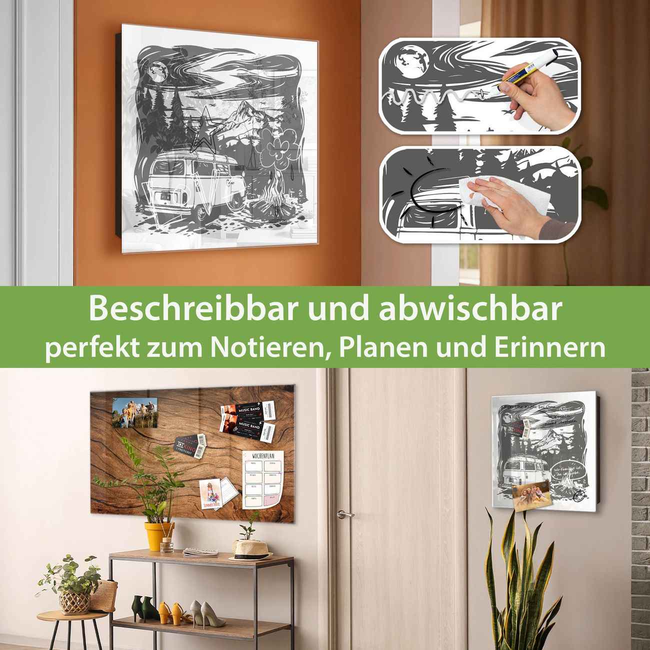 ✅ Magnetisch und mit Kreidestift beschreibbar, gehärtetes Glas, rechts angeschlagene TürOrdnung und Design in einem