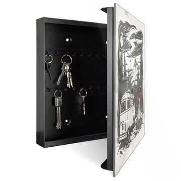 Schlüsselkasten Glas Motiv Abenteuerliche Campingszene
