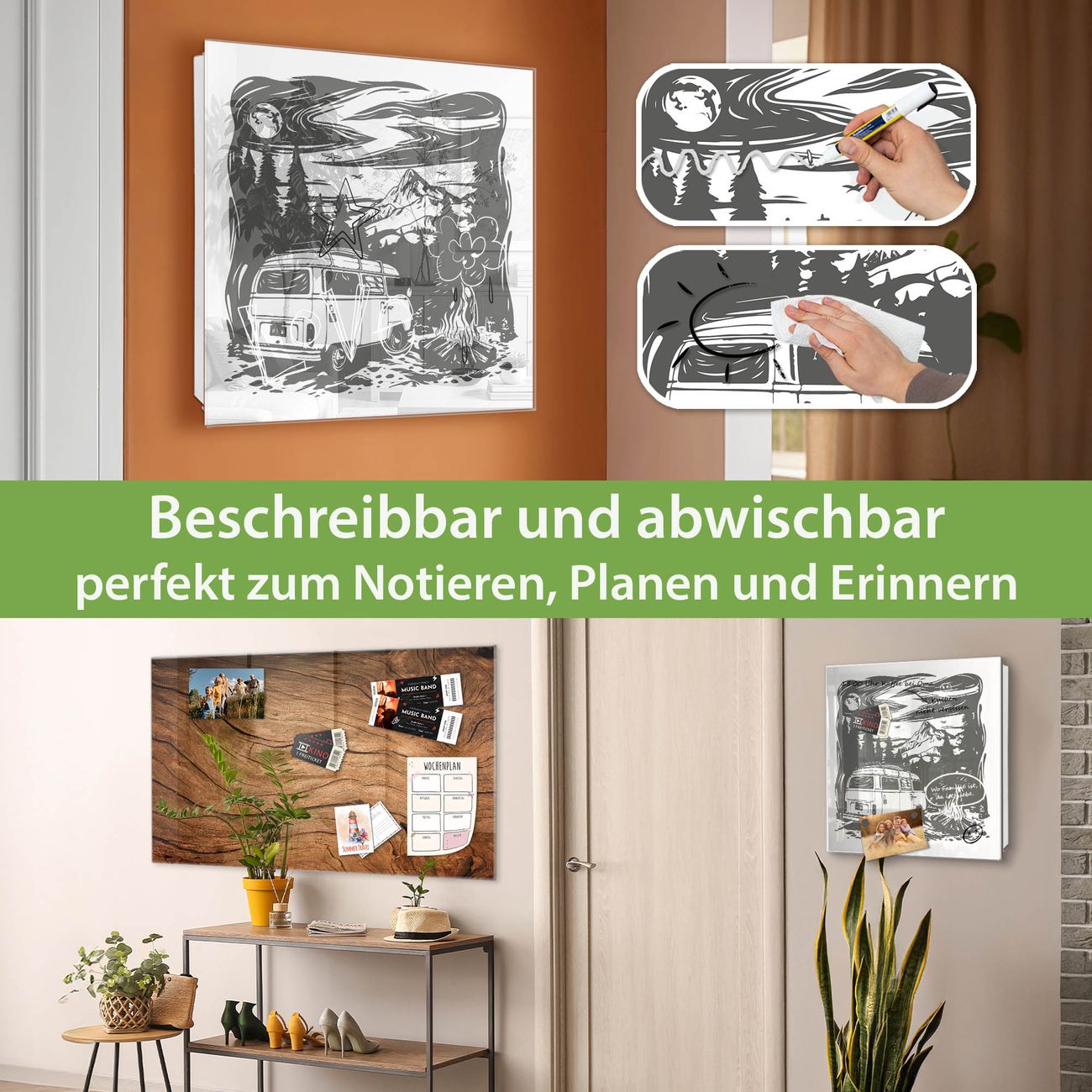 ✅ Magnetisch und mit Kreidestift beschreibbar, gehärtetes Glas, rechts angeschlagene TürOrdnung und Design in einem