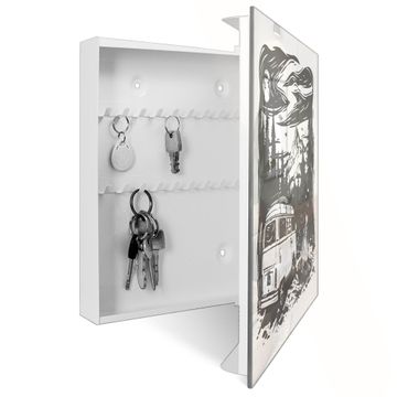 Schlüsselkasten Glas Motiv Abenteuerliche Campingszene