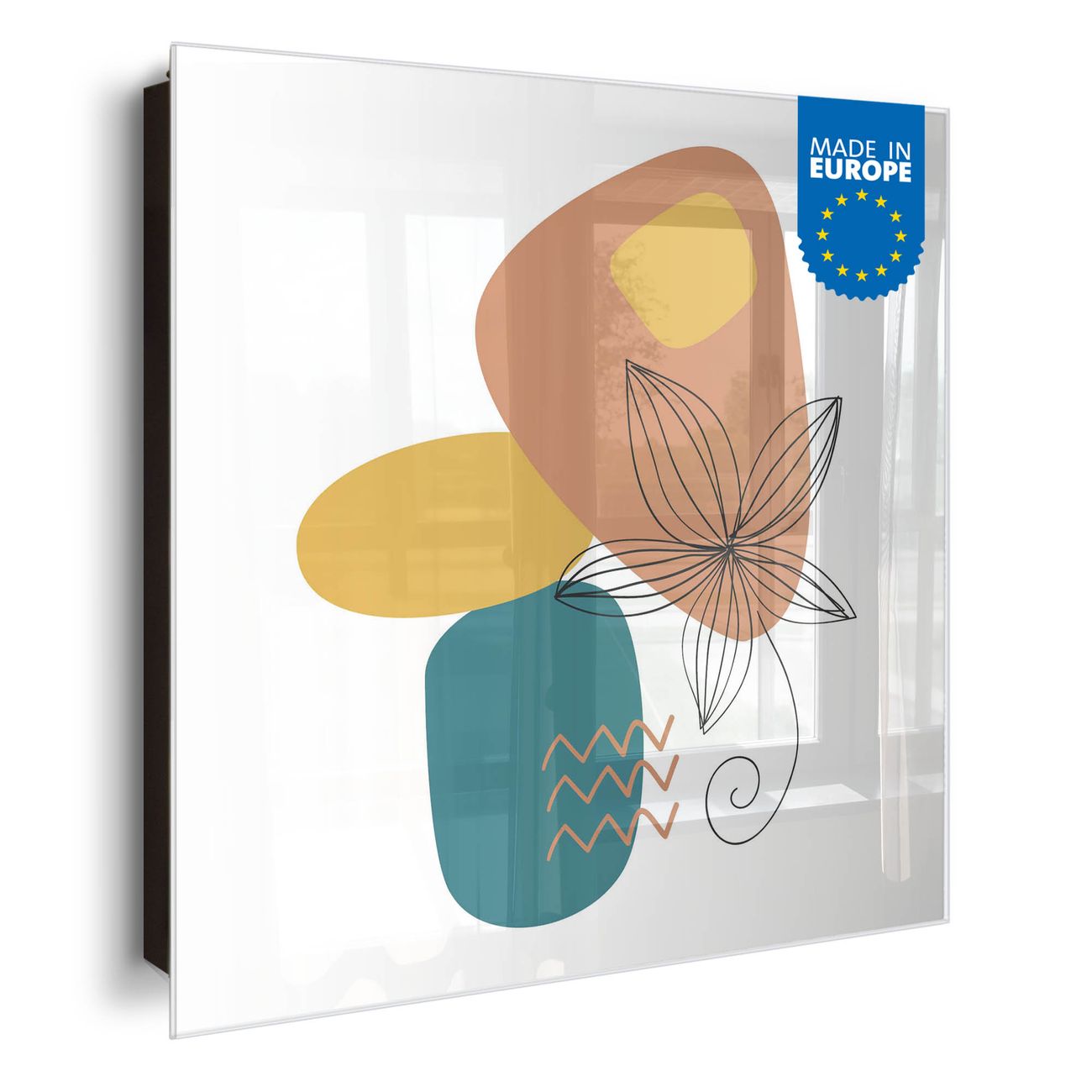 Bringe Ordnung und Eleganz in deinen Eingangsbereich mit dem banjado Schlüsselkasten Motiv Motiv Abstrakte Blumenkontur. Die moderne Schlüsselbox kombiniert funktionales Design mit hochwertiger Verarbeitung und wird so zu einem echten Hingucker in Flur, Büro oder Ferienwohnung. ✅ Stilvolle Schlüsselaufbewahrung mit Glasfront im Motiv Motiv Abstrakte Blumenkontur Der Design-Schlüsselkasten Motiv Motiv Abstrakte Blumenkontur bietet Platz für bis zu 50 Schlüssel, die auf 5 stabilen Reihen mit je 10 Haken übersichtlich verstaut werden. Mit seinen kompakten Maßen von 30 x 30 x 5 cm passt die Schlüsselbox perfekt auch in kleinere Räume. Der schwarz lackierte Stahlkorpus mit rechts angeschlagenem Türscharnier harmoniert mit der Glasfront und fügt sich nahtlos in jedes Wohnambiente ein. Ob als Schlüsselorganizer für Zuhause oder als praktische Lösung für Büros, Praxen und Gewerbe, der banjado Schlüsselkasten sorgt für Ordnung und Übersicht. Dank der magnetischen, mit Kreidestiften beschreibbaren Glasfront kannst du Notizen anheften oder Termine direkt auf der Oberfläche festhalten. Die Schlüsselbox Motiv Motiv Abstrakte Blumenkontur zur Wandmontage wird inklusive Befestigungsmaterial geliefert und ist schnell angebracht. So hast du deine Schlüssel jederzeit griffbereit und zugleich stilvoll verstaut. Mit diesem banjado Schlüsselkasten Motiv Motiv Abstrakte Blumenkontur kombinierst du praktische Aufbewahrung mit stilvollem Wohndesign. Ob privat oder geschäftlich, die Schlüsselbox sorgt für mehr Ordnung, Übersicht und ein wohnliches Ambiente.Vorteile im Überblick