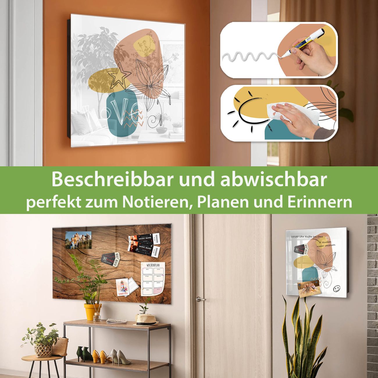✅ Magnetisch und mit Kreidestift beschreibbar, gehärtetes Glas, rechts angeschlagene TürOrdnung und Design in einem