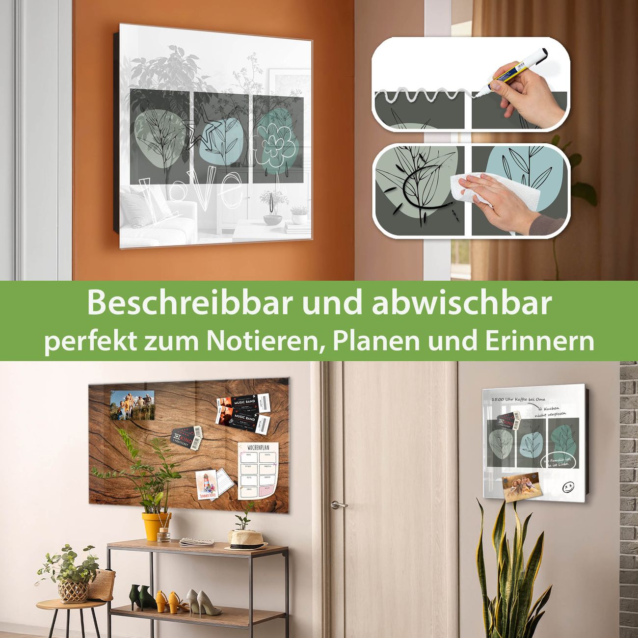✅ Magnetisch und mit Kreidestift beschreibbar, gehärtetes Glas, links angeschlagene TürOrdnung und Design in einem