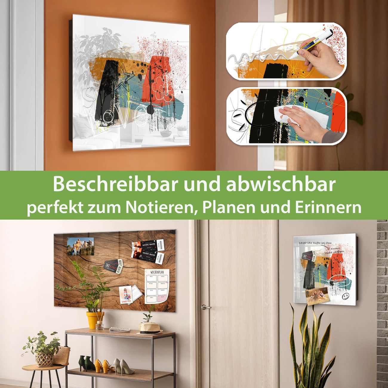 Bringe Ordnung und Eleganz in deinen Eingangsbereich mit dem banjado Schlüsselkasten Motiv Motiv Abstrakte Farbexplosion. Die moderne Schlüsselbox kombiniert funktionales Design mit hochwertiger Verarbeitung und wird so zu einem echten Hingucker in Flur, Büro oder Ferienwohnung. ✅ Stilvolle Schlüsselaufbewahrung mit Glasfront im Motiv Motiv Abstrakte Farbexplosion Der Design-Schlüsselkasten Motiv Motiv Abstrakte Farbexplosion bietet Platz für bis zu 50 Schlüssel, die auf 5 stabilen Reihen mit je 10 Haken übersichtlich verstaut werden. Mit seinen kompakten Maßen von 30 x 30 x 5 cm passt die Schlüsselbox perfekt auch in kleinere Räume. Der schwarz lackierte Stahlkorpus mit rechts angeschlagenem Türscharnier harmoniert mit der Glasfront und fügt sich nahtlos in jedes Wohnambiente ein. Ob als Schlüsselorganizer für Zuhause oder als praktische Lösung für Büros, Praxen und Gewerbe, der banjado Schlüsselkasten sorgt für Ordnung und Übersicht. Dank der magnetischen, mit Kreidestiften beschreibbaren Glasfront kannst du Notizen anheften oder Termine direkt auf der Oberfläche festhalten. Die Schlüsselbox Motiv Motiv Abstrakte Farbexplosion zur Wandmontage wird inklusive Befestigungsmaterial geliefert und ist schnell angebracht. So hast du deine Schlüssel jederzeit griffbereit und zugleich stilvoll verstaut. Mit diesem banjado Schlüsselkasten Motiv Motiv Abstrakte Farbexplosion kombinierst du praktische Aufbewahrung mit stilvollem Wohndesign. Ob privat oder geschäftlich, die Schlüsselbox sorgt für mehr Ordnung, Übersicht und ein wohnliches Ambiente.Vorteile im Überblick