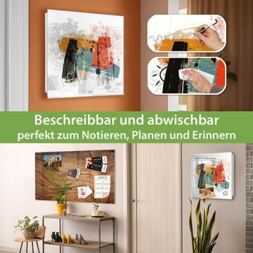 Bringe Ordnung und Eleganz in deinen Eingangsbereich mit dem banjado Schlüsselkasten Motiv Motiv Abstrakte Farbexplosion. Die moderne Schlüsselbox kombiniert funktionales Design mit hochwertiger Verarbeitung und wird so zu einem echten Hingucker in Flur, Büro oder Ferienwohnung. ✅ Stilvolle Schlüsselaufbewahrung mit Glasfront im Motiv Motiv Abstrakte Farbexplosion Der Design-Schlüsselkasten Motiv Motiv Abstrakte Farbexplosion bietet Platz für bis zu 50 Schlüssel, die auf 5 stabilen Reihen mit je 10 Haken übersichtlich verstaut werden. Mit seinen kompakten Maßen von 30 x 30 x 5 cm passt die Schlüsselbox perfekt auch in kleinere Räume. Der weiß lackierte Stahlkorpus mit rechts angeschlagenem Türscharnier harmoniert mit der Glasfront und fügt sich nahtlos in jedes Wohnambiente ein. Ob als Schlüsselorganizer für Zuhause oder als praktische Lösung für Büros, Praxen und Gewerbe, der banjado Schlüsselkasten sorgt für Ordnung und Übersicht. Dank der magnetischen, mit Kreidestiften beschreibbaren Glasfront kannst du Notizen anheften oder Termine direkt auf der Oberfläche festhalten. Die Schlüsselbox Motiv Motiv Abstrakte Farbexplosion zur Wandmontage wird inklusive Befestigungsmaterial geliefert und ist schnell angebracht. So hast du deine Schlüssel jederzeit griffbereit und zugleich stilvoll verstaut. Mit diesem banjado Schlüsselkasten Motiv Motiv Abstrakte Farbexplosion kombinierst du praktische Aufbewahrung mit stilvollem Wohndesign. Ob privat oder geschäftlich, die Schlüsselbox sorgt für mehr Ordnung, Übersicht und ein wohnliches Ambiente.Vorteile im Überblick