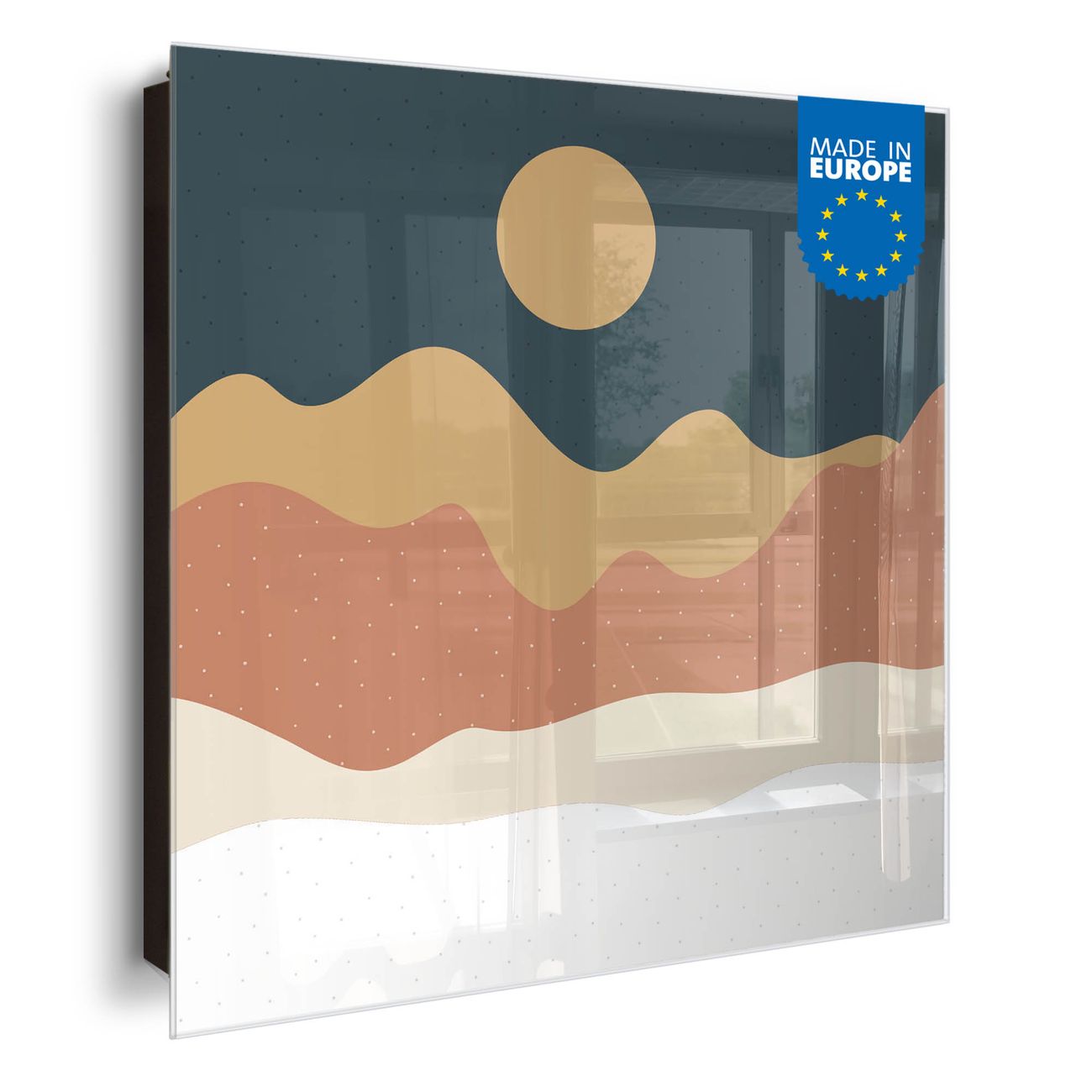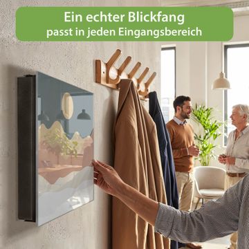 Bringe Ordnung und Eleganz in deinen Eingangsbereich mit dem banjado Schlüsselkasten Motiv Motiv Abstrakte Wüstenlandschaft. Die moderne Schlüsselbox kombiniert funktionales Design mit hochwertiger Verarbeitung und wird so zu einem echten Hingucker in Flur, Büro oder Ferienwohnung. ✅ Stilvolle Schlüsselaufbewahrung mit Glasfront im Motiv Motiv Abstrakte Wüstenlandschaft Der Design-Schlüsselkasten Motiv Motiv Abstrakte Wüstenlandschaft bietet Platz für bis zu 50 Schlüssel, die auf 5 stabilen Reihen mit je 10 Haken übersichtlich verstaut werden. Mit seinen kompakten Maßen von 30 x 30 x 5 cm passt die Schlüsselbox perfekt auch in kleinere Räume. Der schwarz lackierte Stahlkorpus mit rechts angeschlagenem Türscharnier harmoniert mit der Glasfront und fügt sich nahtlos in jedes Wohnambiente ein. Ob als Schlüsselorganizer für Zuhause oder als praktische Lösung für Büros, Praxen und Gewerbe, der banjado Schlüsselkasten sorgt für Ordnung und Übersicht. Dank der magnetischen, mit Kreidestiften beschreibbaren Glasfront kannst du Notizen anheften oder Termine direkt auf der Oberfläche festhalten. Die Schlüsselbox Motiv Motiv Abstrakte Wüstenlandschaft zur Wandmontage wird inklusive Befestigungsmaterial geliefert und ist schnell angebracht. So hast du deine Schlüssel jederzeit griffbereit und zugleich stilvoll verstaut. Mit diesem banjado Schlüsselkasten Motiv Motiv Abstrakte Wüstenlandschaft kombinierst du praktische Aufbewahrung mit stilvollem Wohndesign. Ob privat oder geschäftlich, die Schlüsselbox sorgt für mehr Ordnung, Übersicht und ein wohnliches Ambiente.Vorteile im Überblick