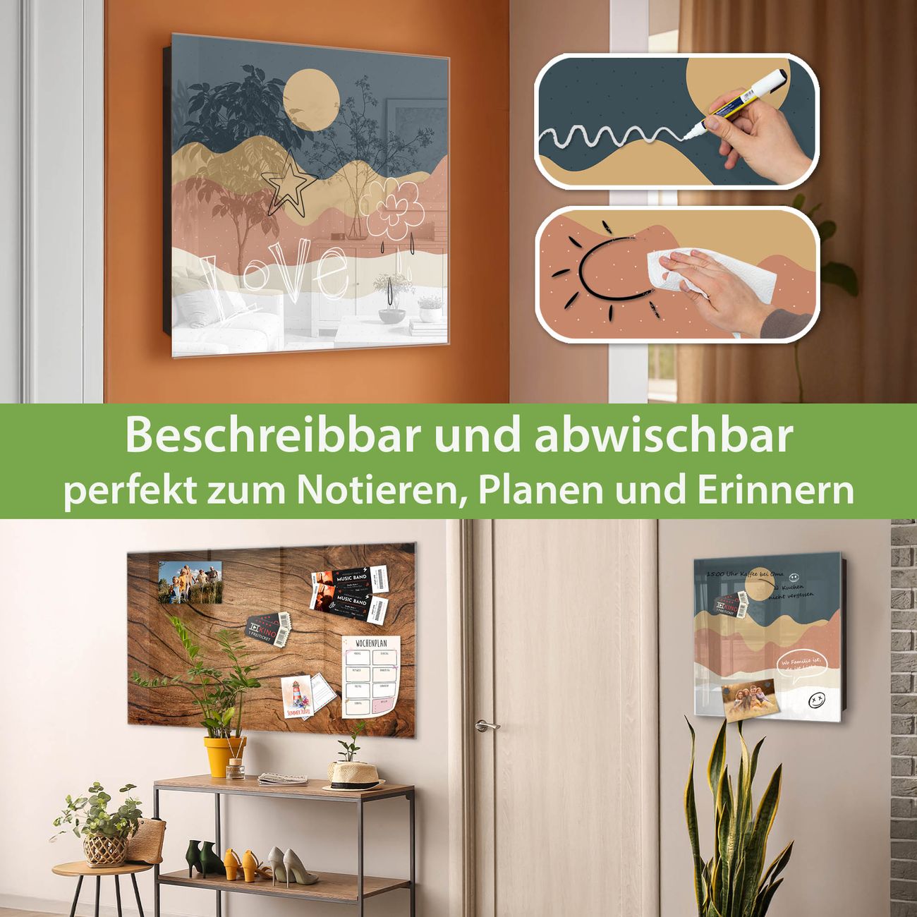 ✅ Magnetisch und mit Kreidestift beschreibbar, gehärtetes Glas, links angeschlagene TürOrdnung und Design in einem
