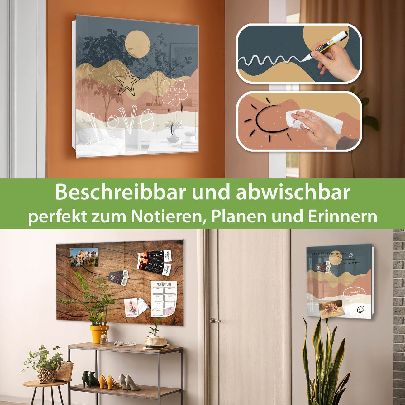 ✅ Magnetisch und mit Kreidestift beschreibbar, gehärtetes Glas, links angeschlagene TürOrdnung und Design in einem