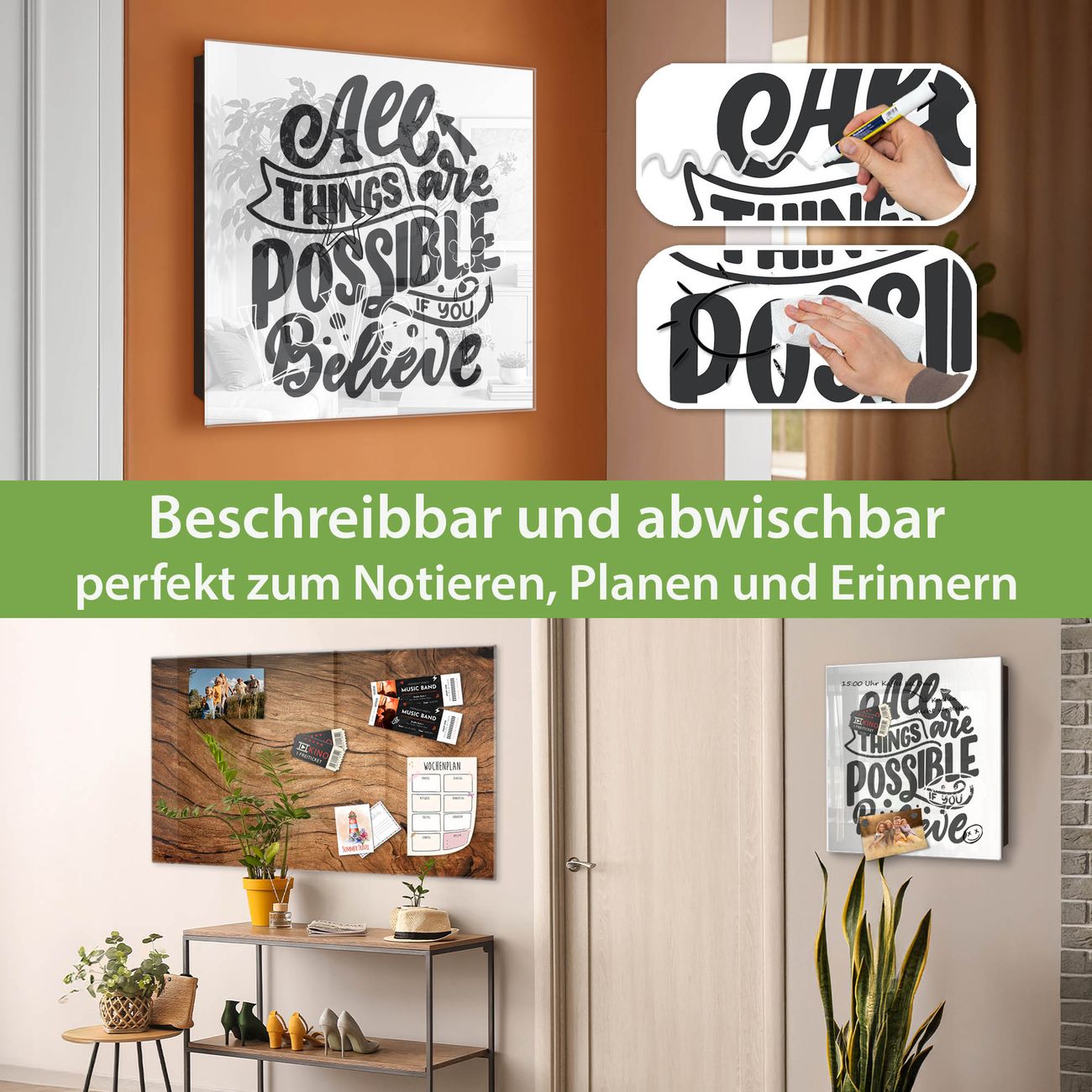 ✅ Magnetisch und mit Kreidestift beschreibbar, gehärtetes Glas, rechts angeschlagene TürOrdnung und Design in einem
