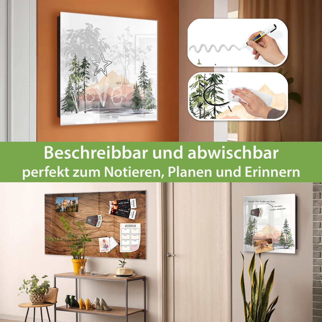 ✅ Magnetisch und mit Kreidestift beschreibbar, gehärtetes Glas, rechts angeschlagene TürOrdnung und Design in einem