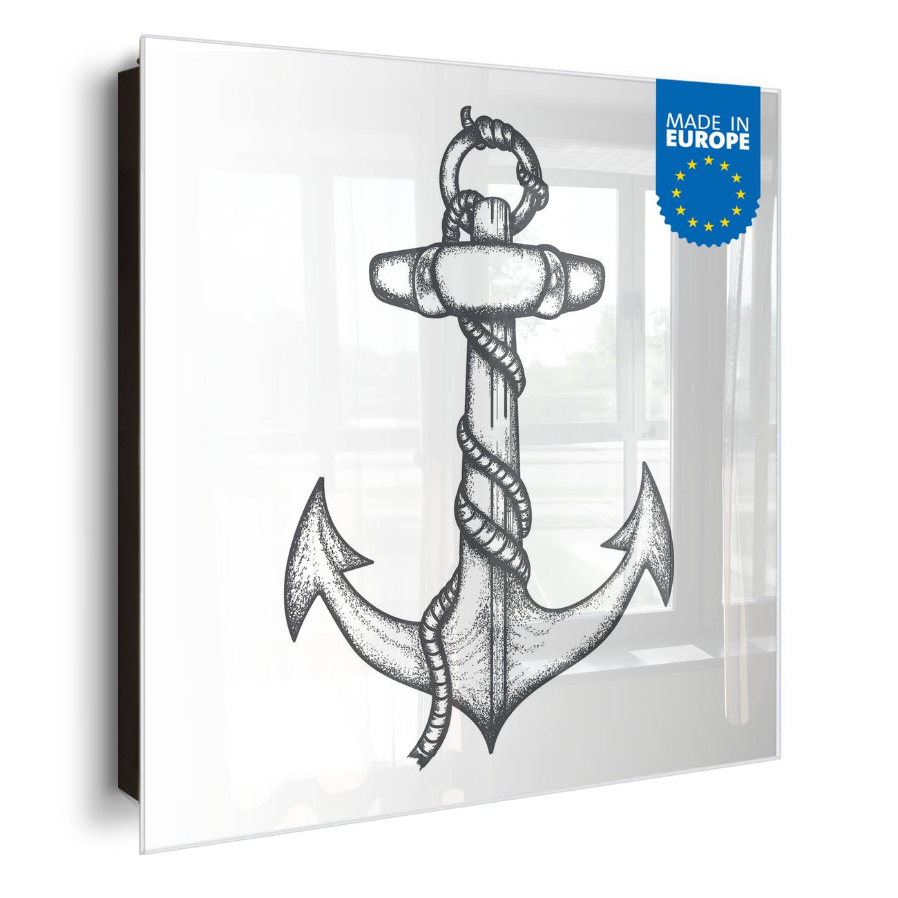 Bringe Ordnung und Eleganz in deinen Eingangsbereich mit dem banjado Schlüsselkasten Motiv Motiv Anker 2. Die moderne Schlüsselbox kombiniert funktionales Design mit hochwertiger Verarbeitung und wird so zu einem echten Hingucker in Flur, Büro oder Ferienwohnung. ✅ Stilvolle Schlüsselaufbewahrung mit Glasfront im Motiv Motiv Anker 2 Der Design-Schlüsselkasten Motiv Motiv Anker 2 bietet Platz für bis zu 50 Schlüssel, die auf 5 stabilen Reihen mit je 10 Haken übersichtlich verstaut werden. Mit seinen kompakten Maßen von 30 x 30 x 5 cm passt die Schlüsselbox perfekt auch in kleinere Räume. Der schwarz lackierte Stahlkorpus mit rechts angeschlagenem Türscharnier harmoniert mit der Glasfront und fügt sich nahtlos in jedes Wohnambiente ein. Ob als Schlüsselorganizer für Zuhause oder als praktische Lösung für Büros, Praxen und Gewerbe, der banjado Schlüsselkasten sorgt für Ordnung und Übersicht. Dank der magnetischen, mit Kreidestiften beschreibbaren Glasfront kannst du Notizen anheften oder Termine direkt auf der Oberfläche festhalten. Die Schlüsselbox Motiv Motiv Anker 2 zur Wandmontage wird inklusive Befestigungsmaterial geliefert und ist schnell angebracht. So hast du deine Schlüssel jederzeit griffbereit und zugleich stilvoll verstaut. Mit diesem banjado Schlüsselkasten Motiv Motiv Anker 2 kombinierst du praktische Aufbewahrung mit stilvollem Wohndesign. Ob privat oder geschäftlich, die Schlüsselbox sorgt für mehr Ordnung, Übersicht und ein wohnliches Ambiente.Vorteile im Überblick