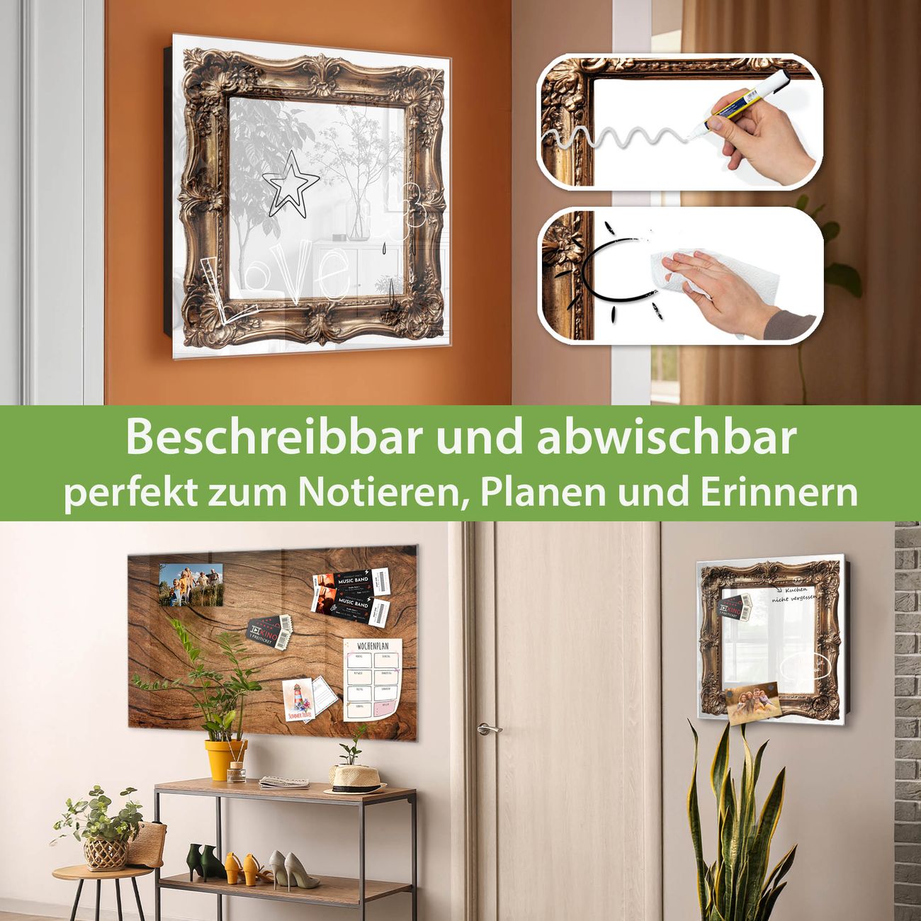 ✅ Magnetisch und mit Kreidestift beschreibbar, gehärtetes Glas, links angeschlagene TürOrdnung und Design in einem