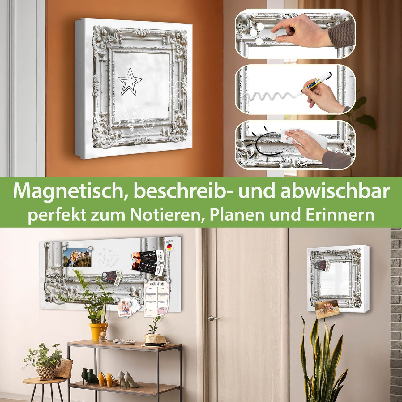 ✅ Magnetisch und mit Kreidestift beschreibbar, links angeschlagene TürOrdnung und Design in einem