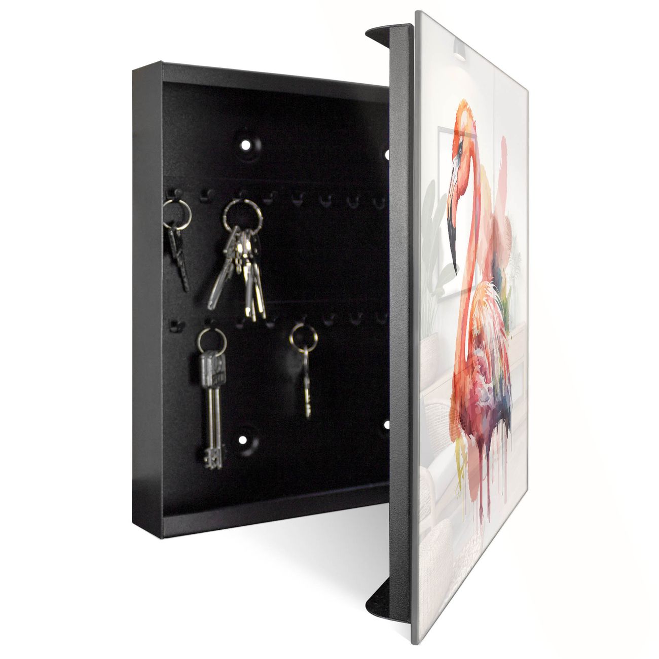 Schlüsselkasten Glas Motiv Aquarell-Flamingo