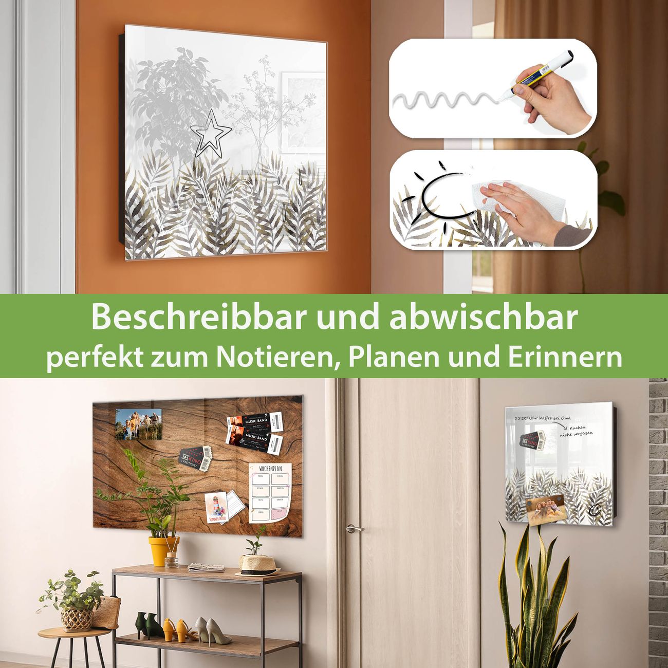 ✅ Magnetisch und mit Kreidestift beschreibbar, gehärtetes Glas, links angeschlagene TürOrdnung und Design in einem