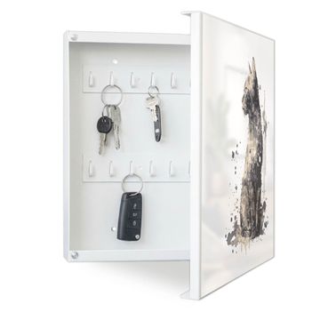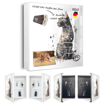 Bringe Ordnung und Eleganz in deinen Eingangsbereich mit dem banjado Schlüsselkasten Motiv Motiv Katzenportrait in Aquarell 4. Die moderne Schlüsselbox kombiniert funktionales Design mit hochwertiger Verarbeitung und wird so zu einem echten Hingucker in Flur, Büro oder Ferienwohnung. ✅ Stilvolle Schlüsselaufbewahrung mit Motiv Motiv Katzenportrait in Aquarell 4 Der Design-Schlüsselkasten Motiv Motiv Katzenportrait in Aquarell 4 bietet Platz für bis zu 32 Schlüssel, die auf 4 stabilen Reihen mit je 8 Haken übersichtlich verstaut werden. Mit seinen kompakten Maßen von 30 x 30 x 5 cm passt die Schlüsselbox perfekt auch in kleinere Räume. Der weiß lackierte Stahlkorpus mit rechts angeschlagenem Türscharnier harmoniert mit gedruckten Folie auf der Front und fügt sich nahtlos in jedes Wohnambiente ein. Ob als Schlüsselorganizer für Zuhause oder als praktische Lösung für Büros, Praxen und Gewerbe, der banjado Schlüsselkasten sorgt für Ordnung und Übersicht. Dank der magnetischen, mit Kreidestiften beschreibbaren Folie auf der Front kannst du Notizen anheften oder Termine direkt auf der Oberfläche festhalten. Die Schlüsselbox Motiv Motiv Katzenportrait in Aquarell 4 zur Wandmontage wird inklusive Befestigungsmaterial geliefert und ist schnell angebracht. So hast du deine Schlüssel jederzeit griffbereit und zugleich stilvoll verstaut. Mit diesem banjado Schlüsselkasten Motiv Motiv Katzenportrait in Aquarell 4 kombinierst du praktische Aufbewahrung mit stilvollem Wohndesign. Ob privat oder geschäftlich, die Schlüsselbox sorgt für mehr Ordnung, Übersicht und ein wohnliches Ambiente.Vorteile im Überblick