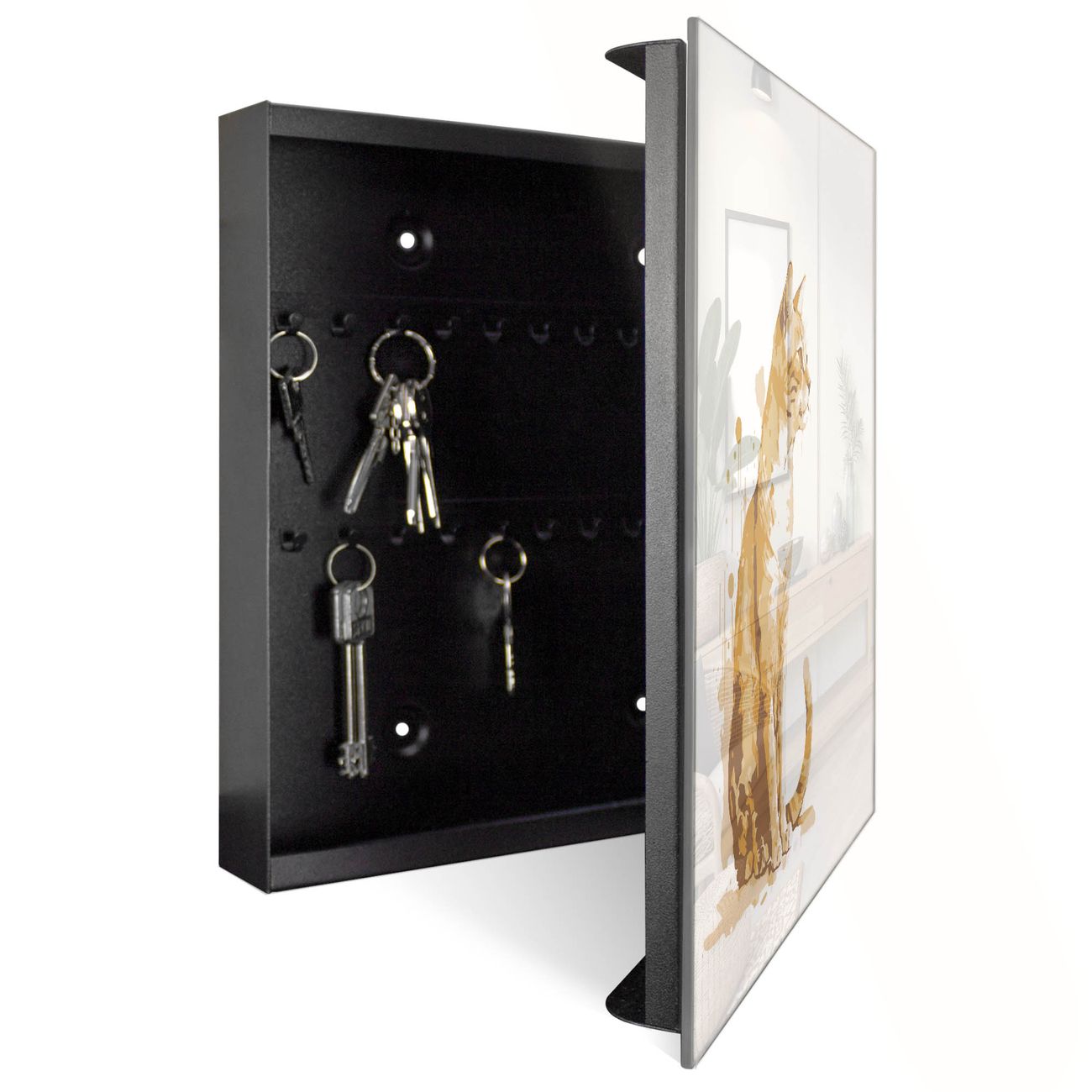 Schlüsselkasten Glas Motiv Aquarellkatze 3