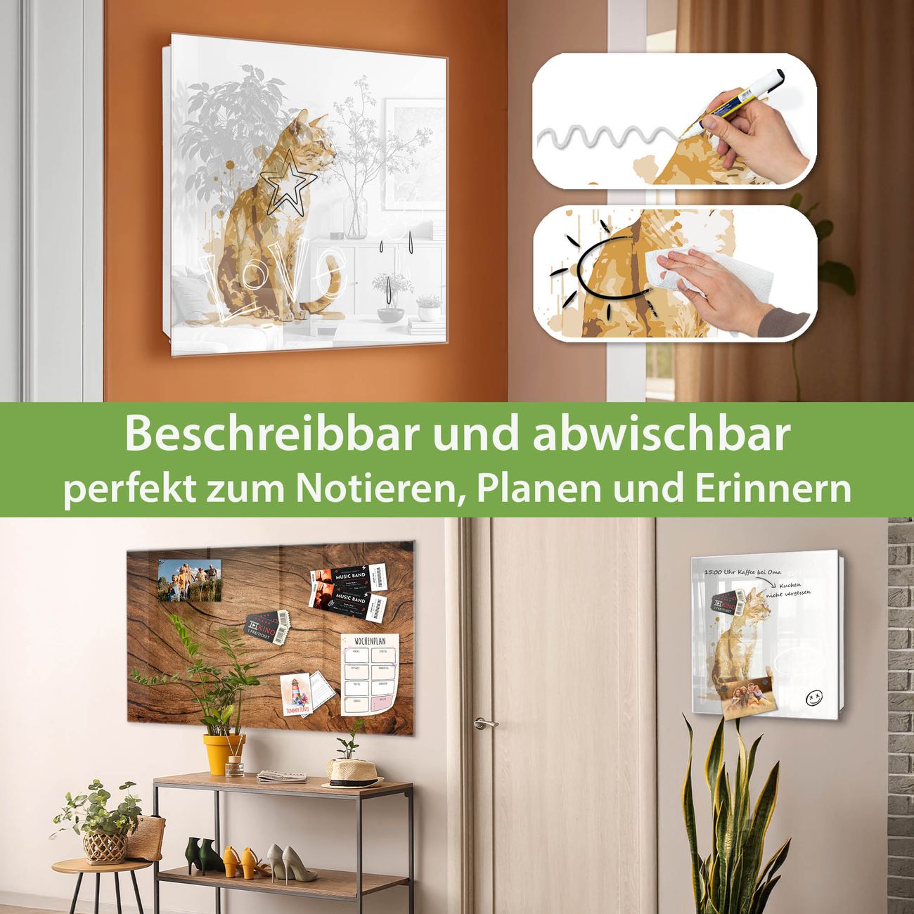 ✅ Magnetisch und mit Kreidestift beschreibbar, gehärtetes Glas, links angeschlagene TürOrdnung und Design in einem
