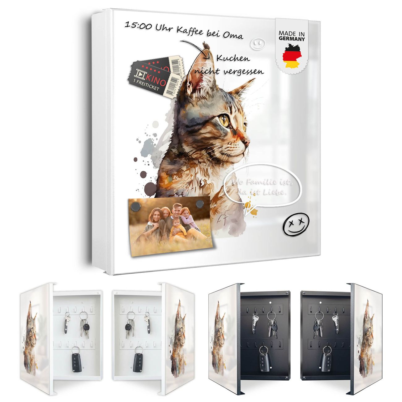 Schlüsselkasten Motiv Katzenportrait in Aquarell 2
