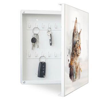 Bringe Ordnung und Eleganz in deinen Eingangsbereich mit dem banjado Schlüsselkasten Motiv Motiv Katzenportrait in Aquarell 2. Die moderne Schlüsselbox kombiniert funktionales Design mit hochwertiger Verarbeitung und wird so zu einem echten Hingucker in Flur, Büro oder Ferienwohnung. ✅ Stilvolle Schlüsselaufbewahrung mit Motiv Motiv Katzenportrait in Aquarell 2 Der Design-Schlüsselkasten Motiv Motiv Katzenportrait in Aquarell 2 bietet Platz für bis zu 32 Schlüssel, die auf 4 stabilen Reihen mit je 8 Haken übersichtlich verstaut werden. Mit seinen kompakten Maßen von 30 x 30 x 5 cm passt die Schlüsselbox perfekt auch in kleinere Räume. Der weiß lackierte Stahlkorpus mit rechts angeschlagenem Türscharnier harmoniert mit gedruckten Folie auf der Front und fügt sich nahtlos in jedes Wohnambiente ein. Ob als Schlüsselorganizer für Zuhause oder als praktische Lösung für Büros, Praxen und Gewerbe, der banjado Schlüsselkasten sorgt für Ordnung und Übersicht. Dank der magnetischen, mit Kreidestiften beschreibbaren Folie auf der Front kannst du Notizen anheften oder Termine direkt auf der Oberfläche festhalten. Die Schlüsselbox Motiv Motiv Katzenportrait in Aquarell 2 zur Wandmontage wird inklusive Befestigungsmaterial geliefert und ist schnell angebracht. So hast du deine Schlüssel jederzeit griffbereit und zugleich stilvoll verstaut. Mit diesem banjado Schlüsselkasten Motiv Motiv Katzenportrait in Aquarell 2 kombinierst du praktische Aufbewahrung mit stilvollem Wohndesign. Ob privat oder geschäftlich, die Schlüsselbox sorgt für mehr Ordnung, Übersicht und ein wohnliches Ambiente.Vorteile im Überblick