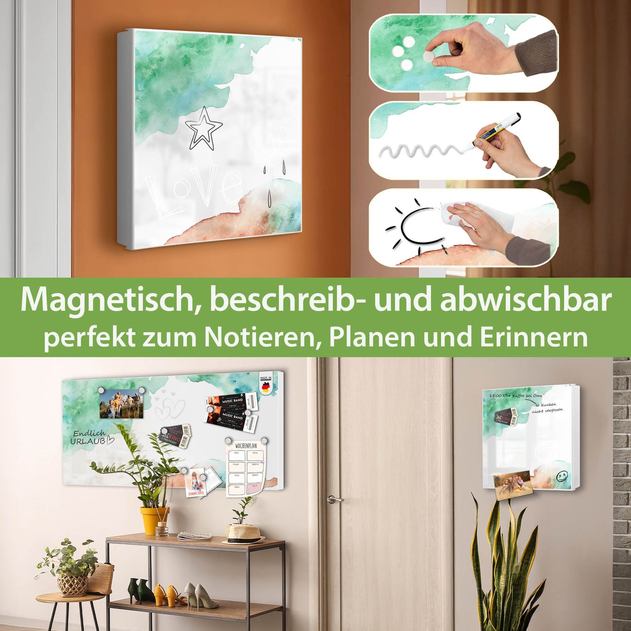 ✅ Magnetisch und mit Kreidestift beschreibbar, rechts angeschlagene TürOrdnung und Design in einem