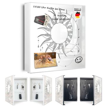 Bringe Ordnung und Eleganz in deinen Eingangsbereich mit dem banjado Schlüsselkasten Motiv Motiv Astronomie 7. Die moderne Schlüsselbox kombiniert funktionales Design mit hochwertiger Verarbeitung und wird so zu einem echten Hingucker in Flur, Büro oder Ferienwohnung. ✅ Stilvolle Schlüsselaufbewahrung mit Motiv Motiv Astronomie 7 Der Design-Schlüsselkasten Motiv Motiv Astronomie 7 bietet Platz für bis zu 32 Schlüssel, die auf 4 stabilen Reihen mit je 8 Haken übersichtlich verstaut werden. Mit seinen kompakten Maßen von 30 x 30 x 5 cm passt die Schlüsselbox perfekt auch in kleinere Räume. Der weiß lackierte Stahlkorpus mit links angeschlagenem Türscharnier harmoniert mit gedruckten Folie auf der Front und fügt sich nahtlos in jedes Wohnambiente ein. Ob als Schlüsselorganizer für Zuhause oder als praktische Lösung für Büros, Praxen und Gewerbe, der banjado Schlüsselkasten sorgt für Ordnung und Übersicht. Dank der magnetischen, mit Kreidestiften beschreibbaren Folie auf der Front kannst du Notizen anheften oder Termine direkt auf der Oberfläche festhalten. Die Schlüsselbox Motiv Motiv Astronomie 7 zur Wandmontage wird inklusive Befestigungsmaterial geliefert und ist schnell angebracht. So hast du deine Schlüssel jederzeit griffbereit und zugleich stilvoll verstaut. Mit diesem banjado Schlüsselkasten Motiv Motiv Astronomie 7 kombinierst du praktische Aufbewahrung mit stilvollem Wohndesign. Ob privat oder geschäftlich, die Schlüsselbox sorgt für mehr Ordnung, Übersicht und ein wohnliches Ambiente.Vorteile im Überblick
