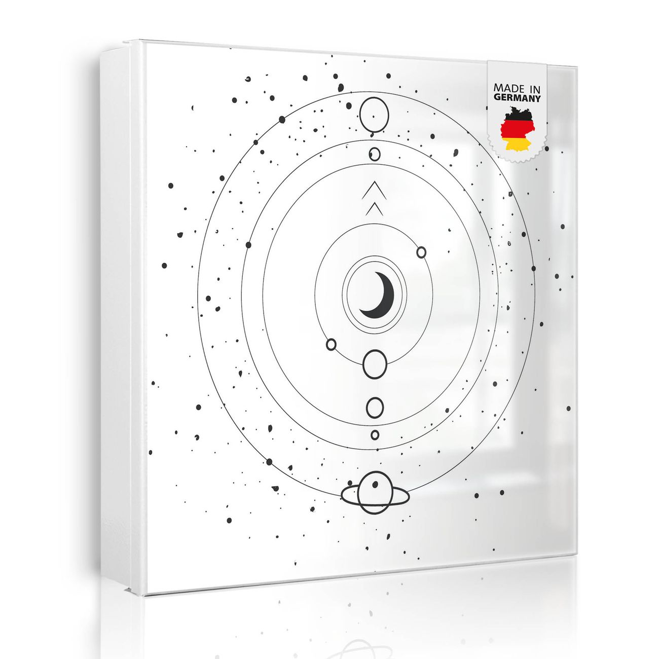 Bringe Ordnung und Eleganz in deinen Eingangsbereich mit dem banjado Schlüsselkasten Motiv Motiv Astronomie 8. Die moderne Schlüsselbox kombiniert funktionales Design mit hochwertiger Verarbeitung und wird so zu einem echten Hingucker in Flur, Büro oder Ferienwohnung. ✅ Stilvolle Schlüsselaufbewahrung mit Motiv Motiv Astronomie 8 Der Design-Schlüsselkasten Motiv Motiv Astronomie 8 bietet Platz für bis zu 32 Schlüssel, die auf 4 stabilen Reihen mit je 8 Haken übersichtlich verstaut werden. Mit seinen kompakten Maßen von 30 x 30 x 5 cm passt die Schlüsselbox perfekt auch in kleinere Räume. Der weiß lackierte Stahlkorpus mit links angeschlagenem Türscharnier harmoniert mit gedruckten Folie auf der Front und fügt sich nahtlos in jedes Wohnambiente ein. Ob als Schlüsselorganizer für Zuhause oder als praktische Lösung für Büros, Praxen und Gewerbe, der banjado Schlüsselkasten sorgt für Ordnung und Übersicht. Dank der magnetischen, mit Kreidestiften beschreibbaren Folie auf der Front kannst du Notizen anheften oder Termine direkt auf der Oberfläche festhalten. Die Schlüsselbox Motiv Motiv Astronomie 8 zur Wandmontage wird inklusive Befestigungsmaterial geliefert und ist schnell angebracht. So hast du deine Schlüssel jederzeit griffbereit und zugleich stilvoll verstaut. Mit diesem banjado Schlüsselkasten Motiv Motiv Astronomie 8 kombinierst du praktische Aufbewahrung mit stilvollem Wohndesign. Ob privat oder geschäftlich, die Schlüsselbox sorgt für mehr Ordnung, Übersicht und ein wohnliches Ambiente.Vorteile im Überblick