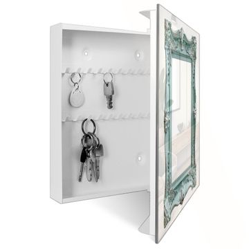 Schlüsselkasten Glas Motiv Barockrahmen in Türkis